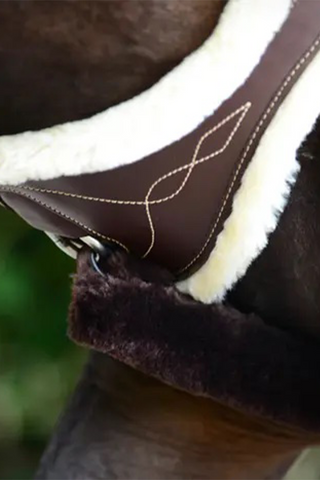 Anatomischer Sattelgurt mit Anti-Scheuer-Funktion und optimaler Luftzirkulation. Elastik an beiden Enden für Bewegungsfreiheit. Schnallen aus rostfreiem Stahl.