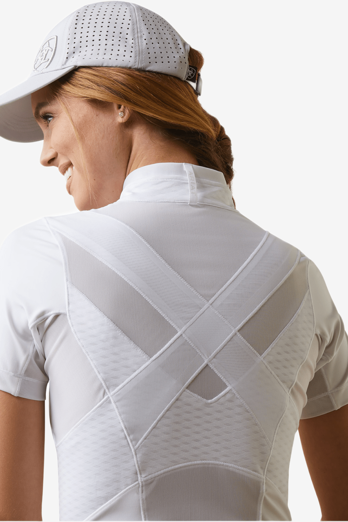 Ein elegantes und schlankes Turnieroberteil, das Ihnen hilft, Ihr Reiten auf das nächste Level zu bringen. Das Design des Shirts erinnert den Reiter dank der Einsätze über den Schulterblättern an die richtige Haltung, ohne die Bewegungsfreiheit einzuschränken. Das funktionelle Material hält Sie trocken, indem es Feuchtigkeit vom Körper ableitet. Reißverschluss vorne.