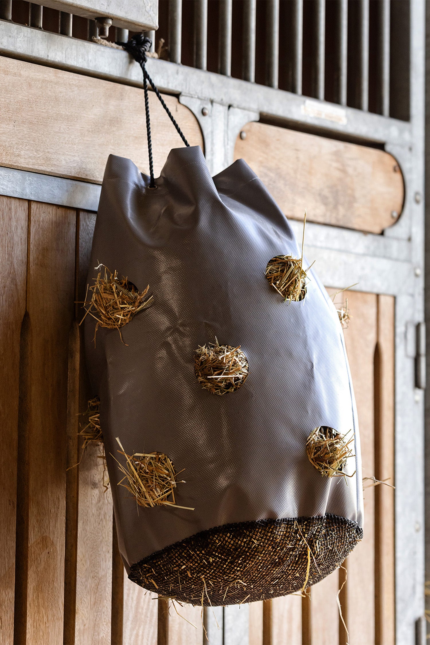 Denne høtaske er en smart og skånsom løsning til daglig fodring af din hest. Med 12 afrundede huller (ca. 8 cm i diameter) fremmer den langsom og naturlig foderoptagelse – hvilket ikke kun gavner fordøjelsen, men også mindsker risikoen for skader i hestens mund takket være den glatte overflade.