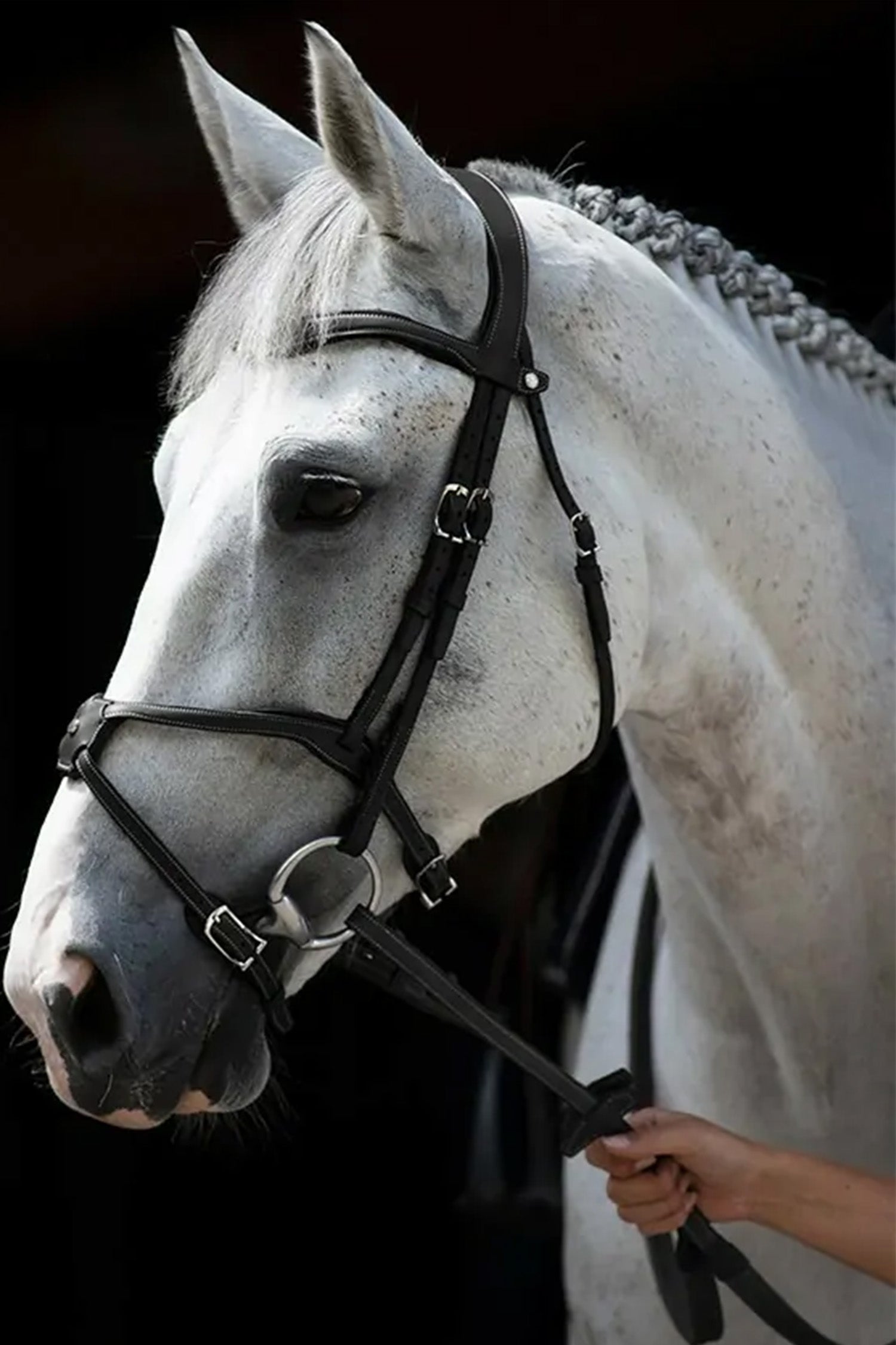 Dette elegante trense er en del af Signature by Antares-kollektionen og har et blødt polstret anatomisk nakkestykke for at give din hest fuld komfort.