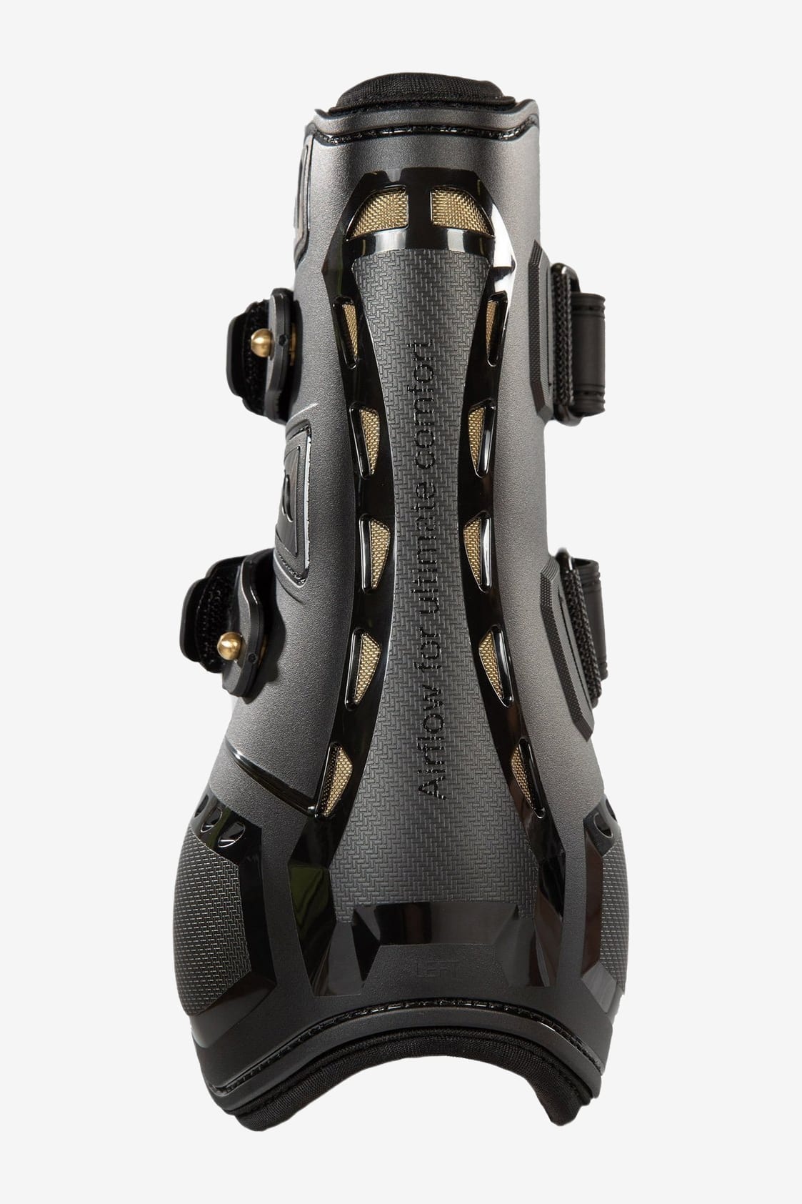 Gamacherne spændes med velcrobånd for en individuel pasform. To solide remme, uden elasticitet, fordeler trykket og forhindrer, at de spændes for stramt omkring hestens ben.