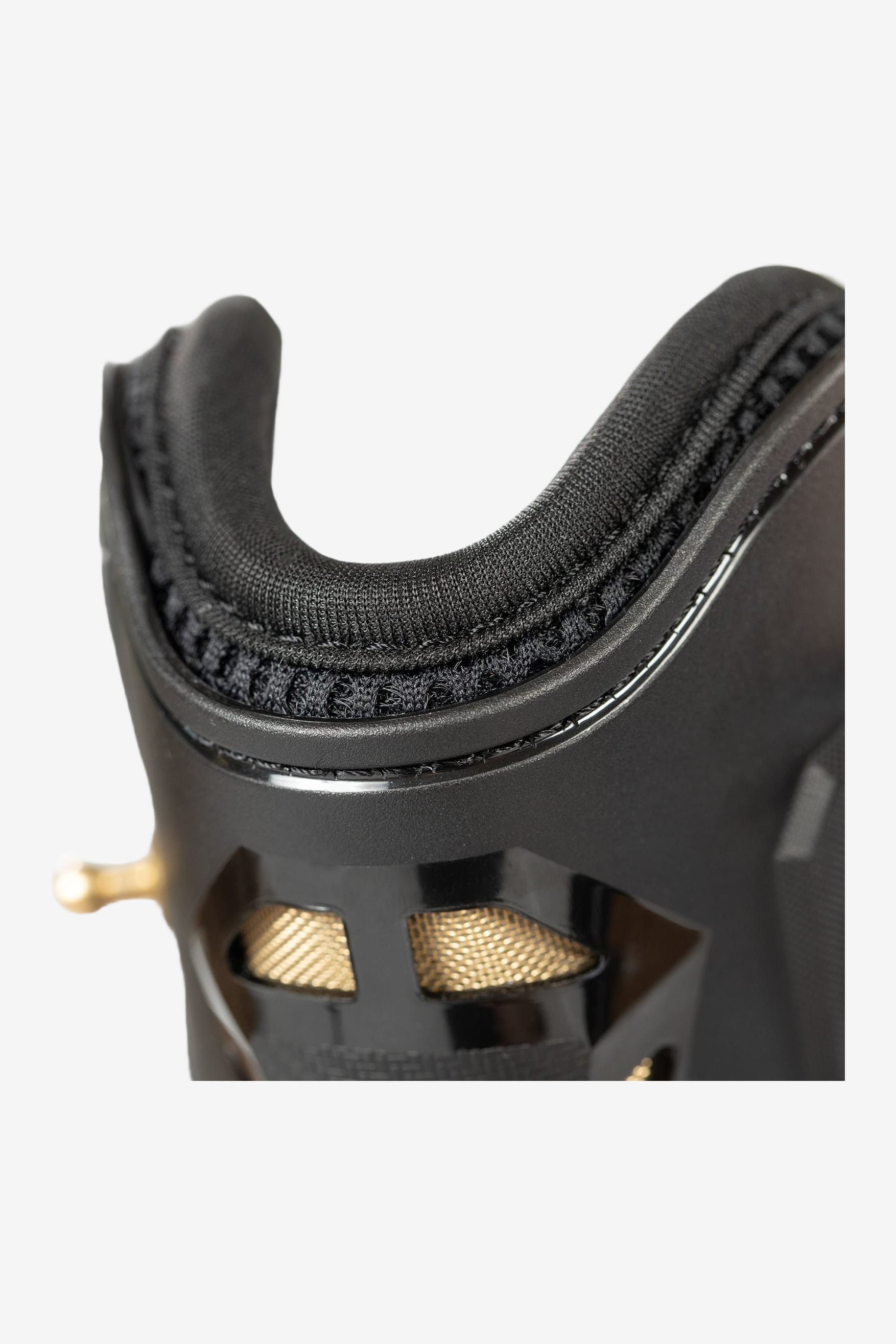 Gamachernes yderside består af et holdbart skal, med et stødabsorberende materiale på bagsiden af senen, der reducerer og spreder effekten af hårde slag og stød. For ekstra ventilation er der lufthuller langs senen og på siderne.