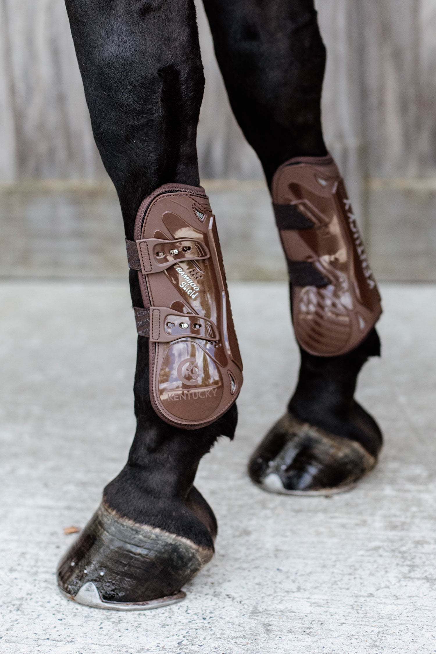 Gamacherne er lavet af et stærkt TPU-skal med flere ventilationshuller. Senområdet er forstærket med Kentuckys bambusskjold for at undgå gennemtrængning. Hvor hesten bøjer benet, har Kentucky tilføjet et blødt stykke naturgummi for at undgå friktion.