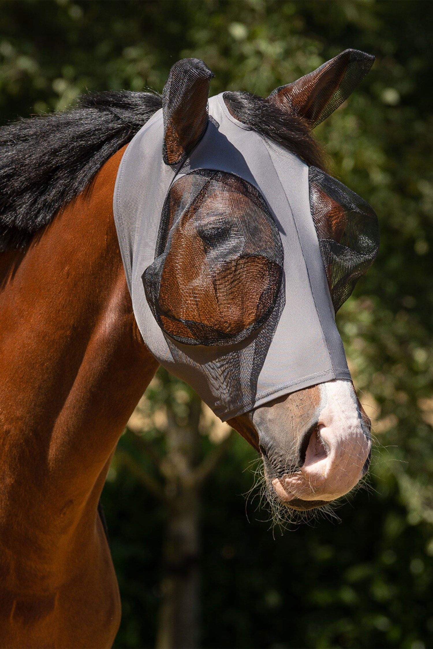 Beskyt din hest mod irriterende fluer og insekter med denne smarte og komfortable fluehætte fra QHP. Fremstillet i et smidigt, elastisk materiale, der former sig efter hestens hoved og giver høj komfort – perfekt til sommermånederne på folden.