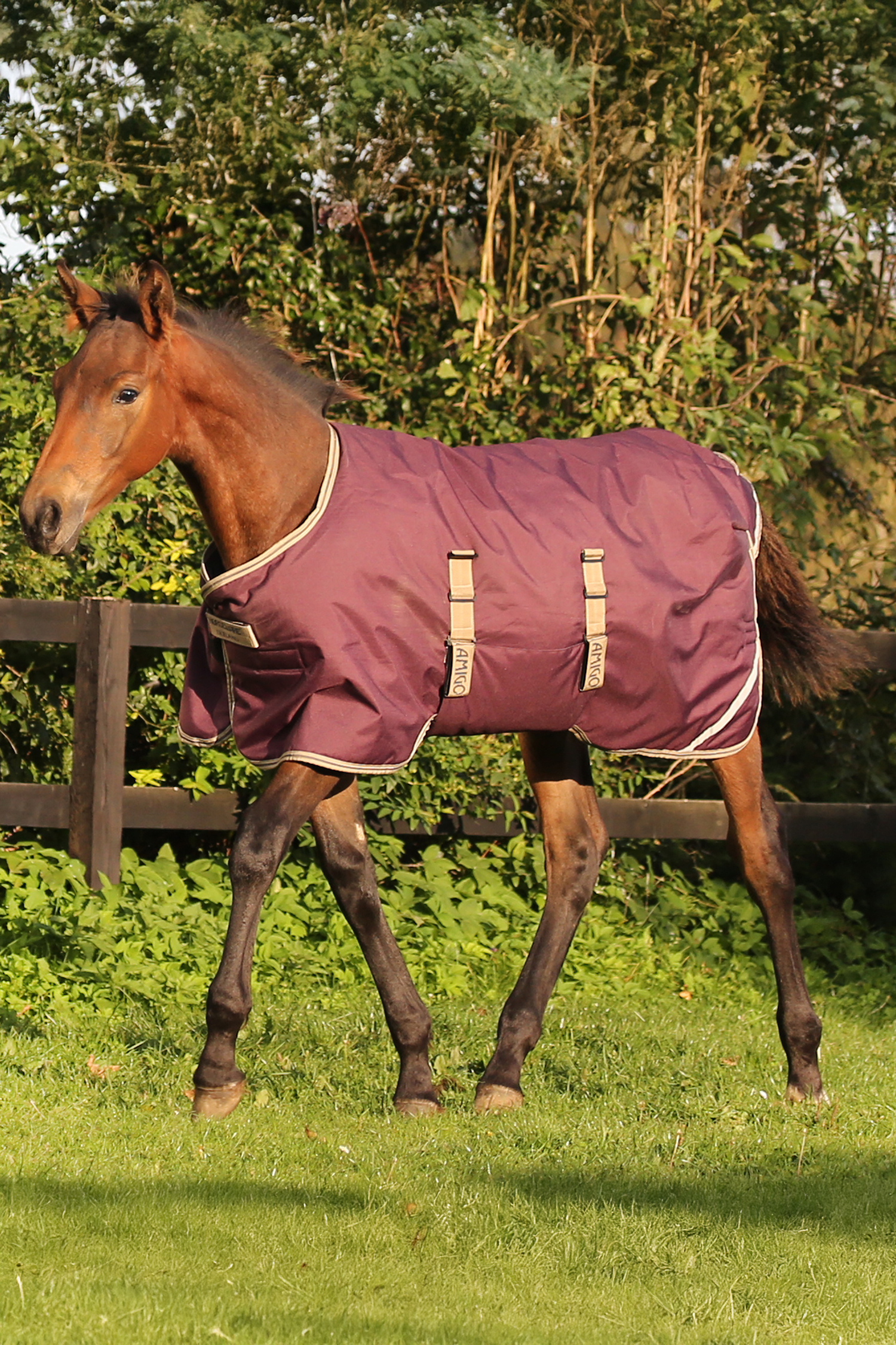 Dette 200g føldækken er lavet af et stærkt og holdbart 600D ydermateriale, som er et åndbart og vandtæt polyester. Dækkenet er udstyret med et justerbart system, der gør det muligt for dækkenet at vokse med føllet. Det har en formet, justerbar maveknapning for en tæt pasform, der holder føllet varmt og tørt. Dækkenet lukkes foran med velcro.