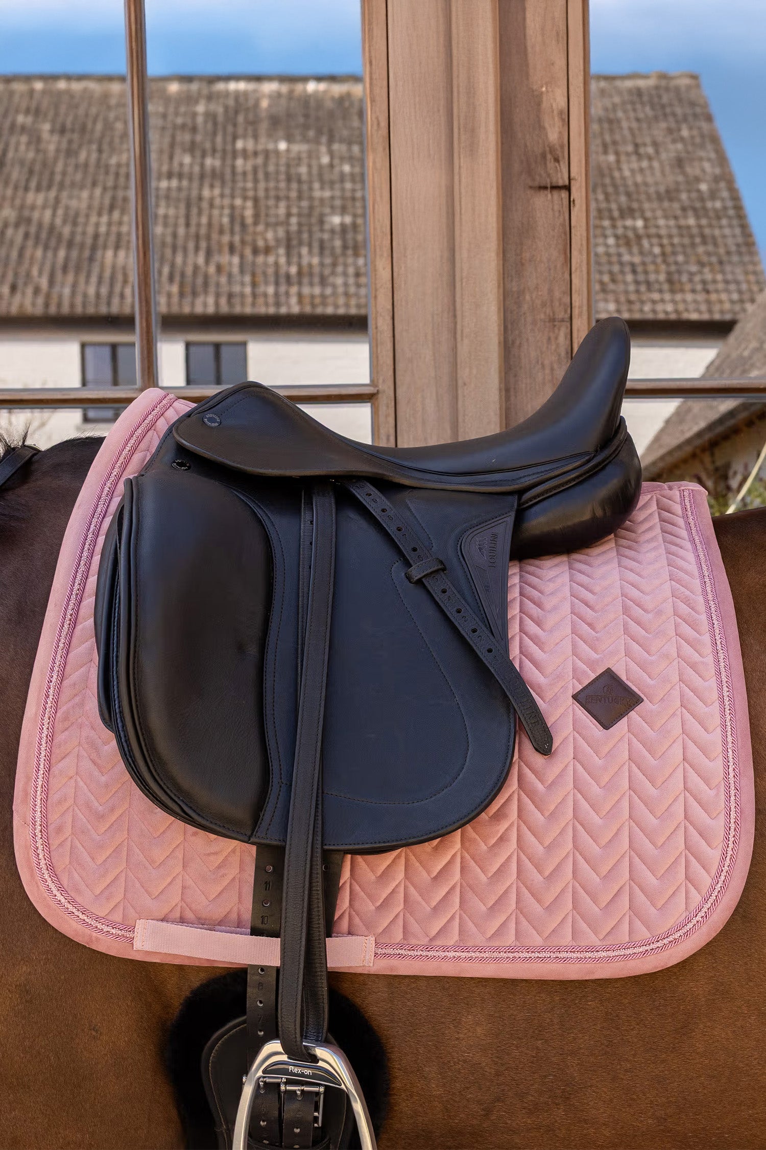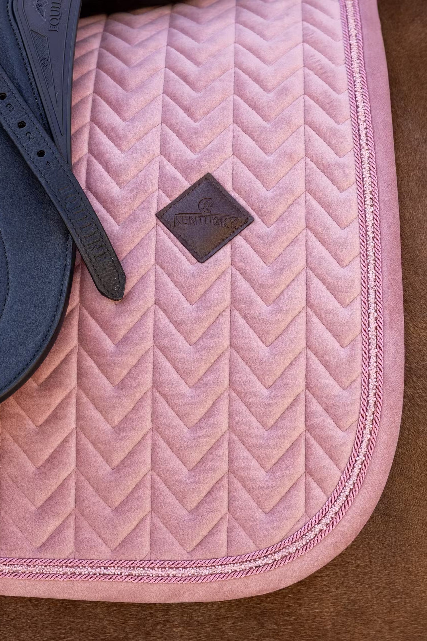 Kentucky Dressurunderlag Velvet Mini Pearls er et eksklusivt dressurunderlag, der kombinerer stil, komfort og funktion på højeste niveau. Den elegante fløjlsstruktur sammen med de dekorative perledetaljer giver et luksuriøst udtryk, som får dig og din hest til at skille jer ud under træning.