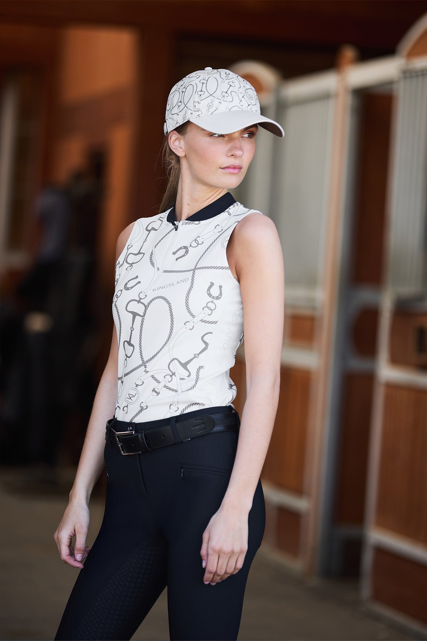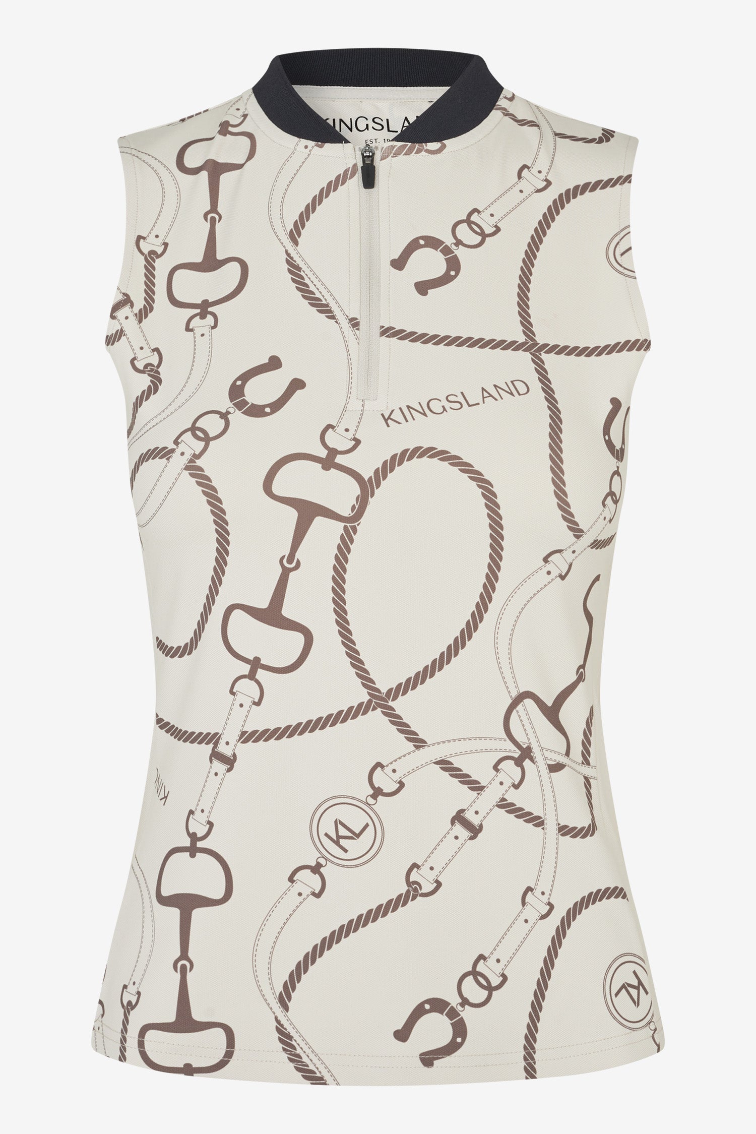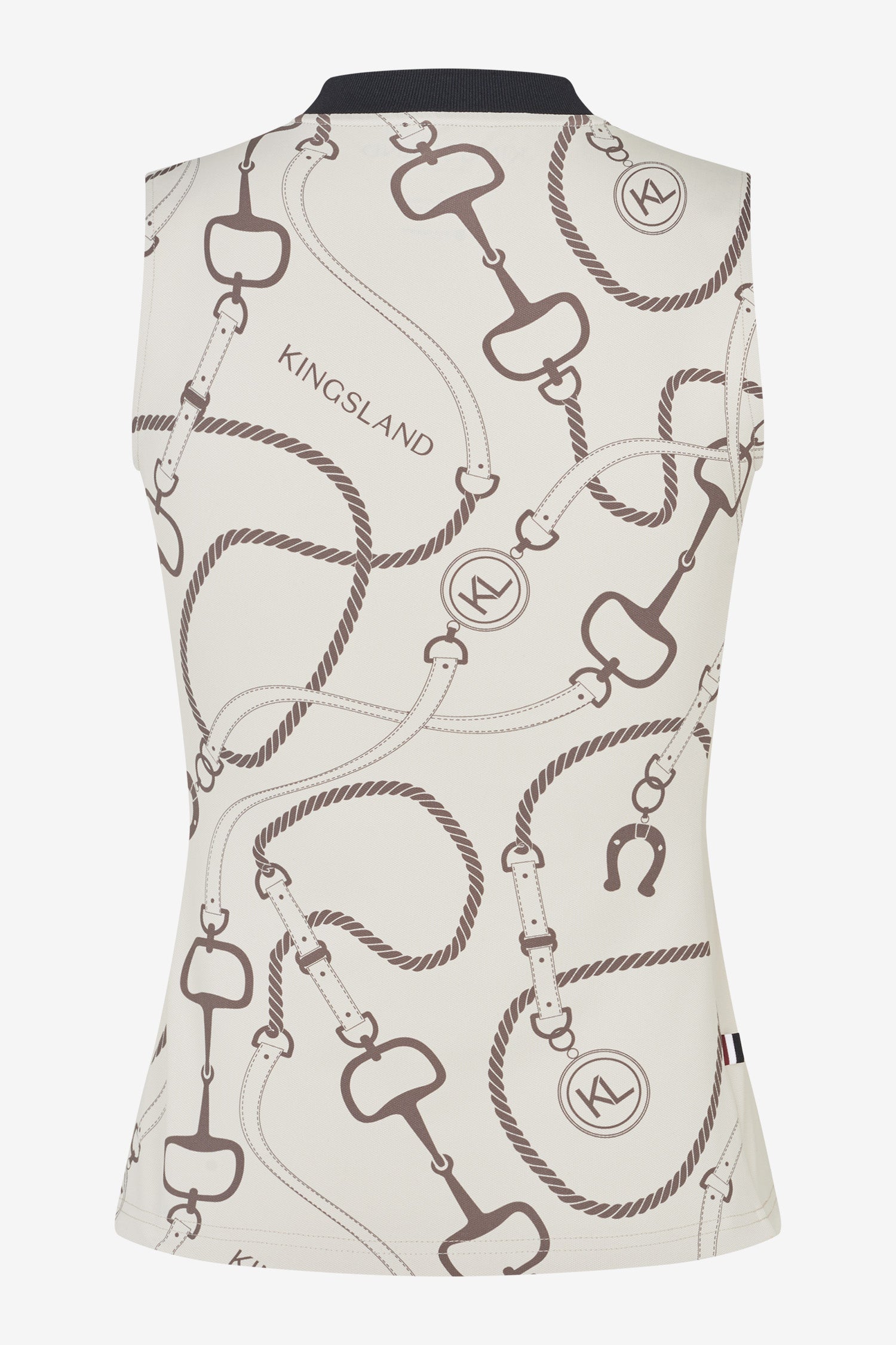 Den ærmeløse design giver fuld bevægelsesfrihed i skuldre og arme, hvilket gør trøjen ideel til aktiv ridning. Det stilrene design fuldendes af diskrete Kingsland-detaljer, der giver et moderne og sporty udtryk.