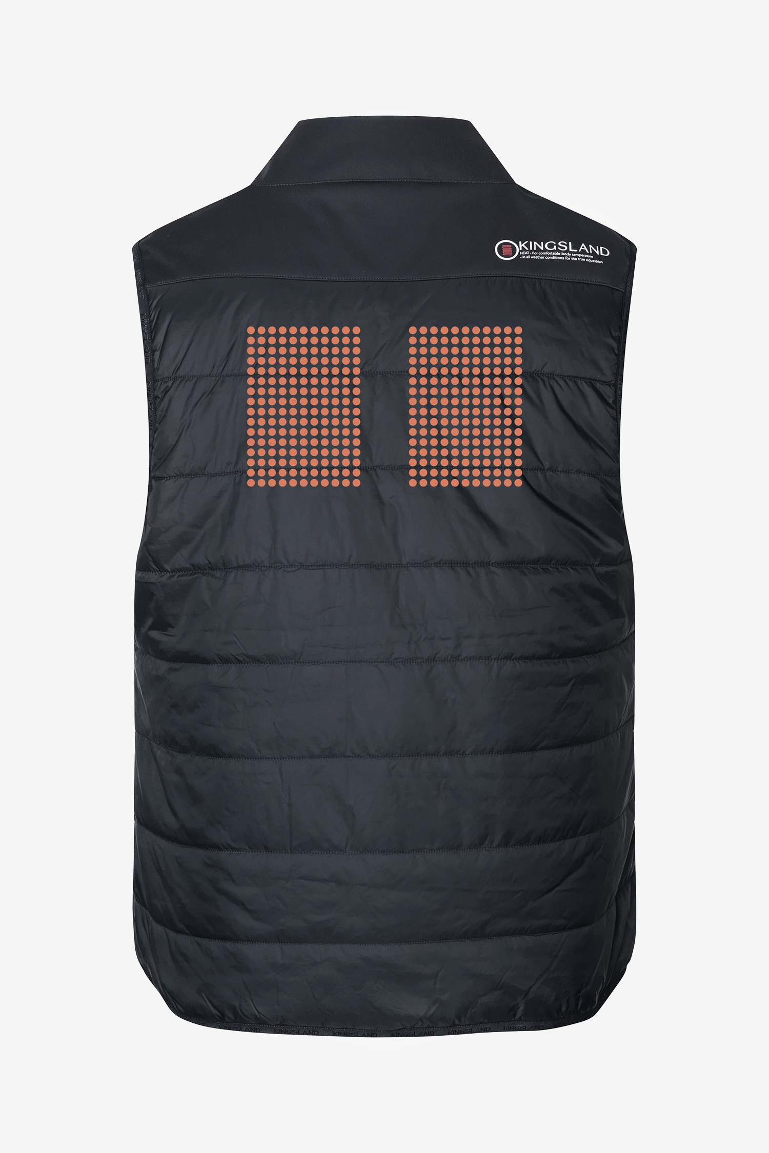 En ny, skøn og praktisk ridevest med en innovativ nyhed. Kingslands nye iWarm-teknologi gør det muligt for rytteren nemt at justere vestens temperatur med et tryk på en knap.
