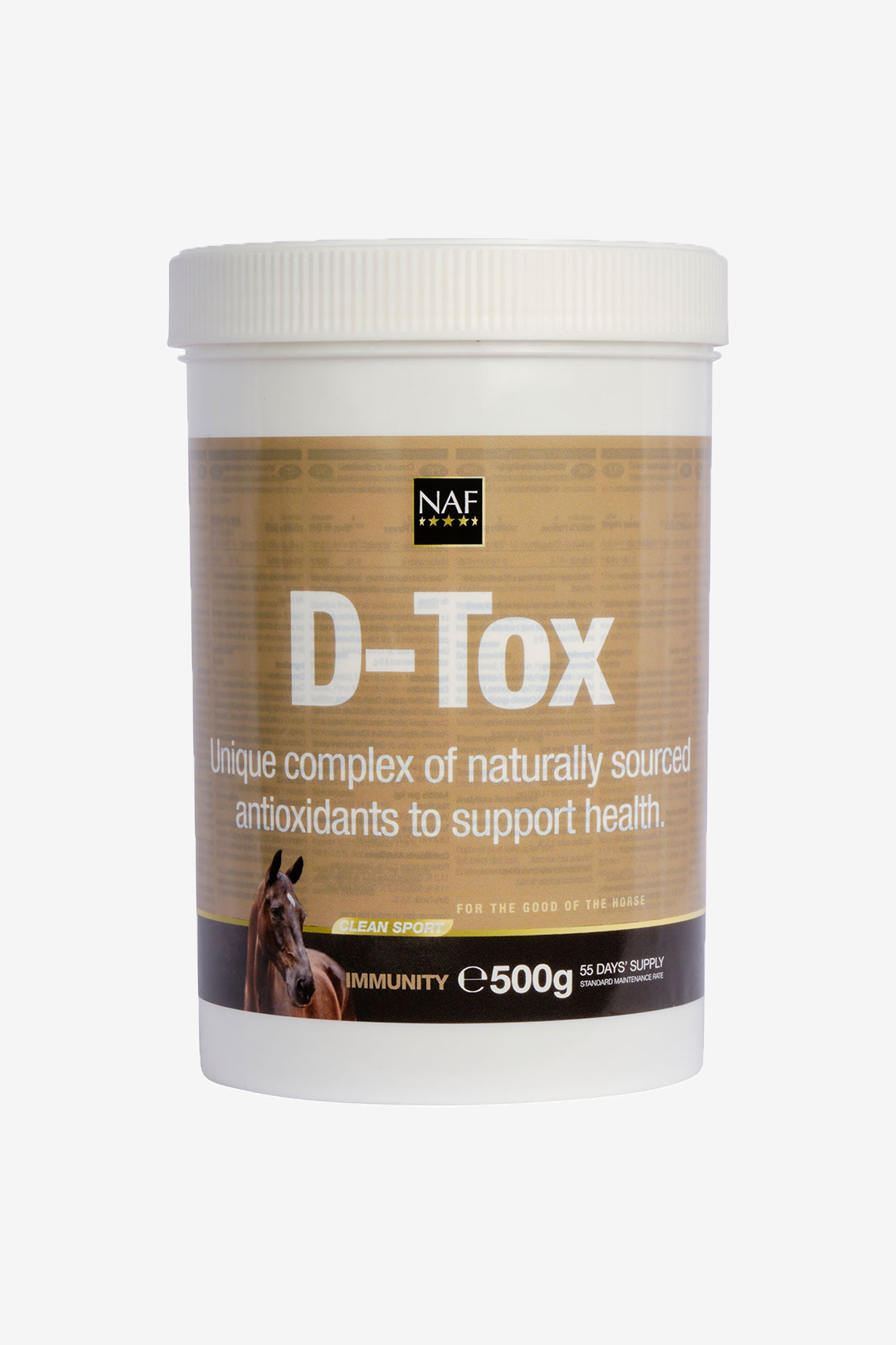 D-Tox indeholder en unik sammensætning af videnskabeligt dokumenterede, naturlige antioxidanter, der skånsomt udskyller overskydende giftstoffer og genopretter hestens naturlige balance.