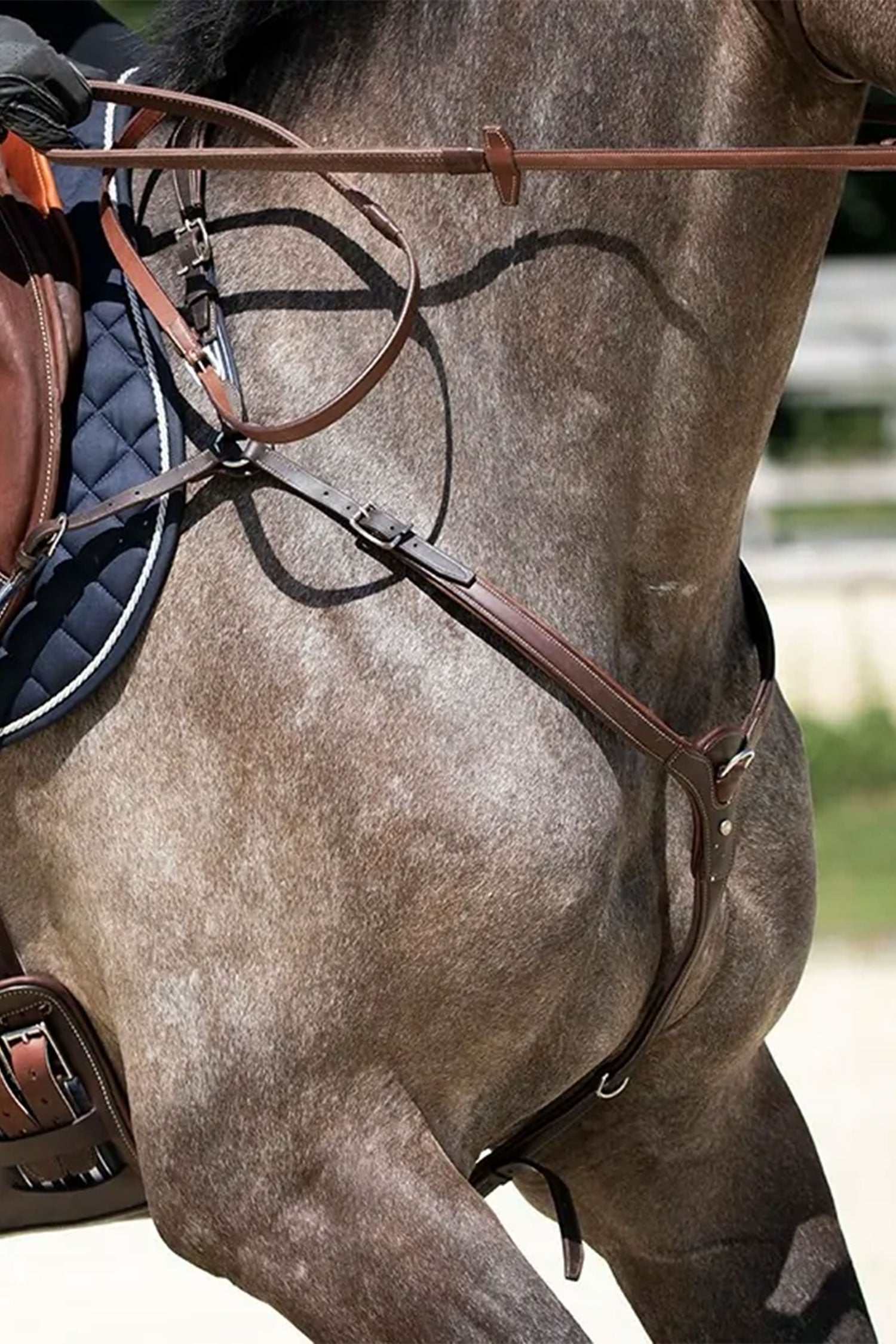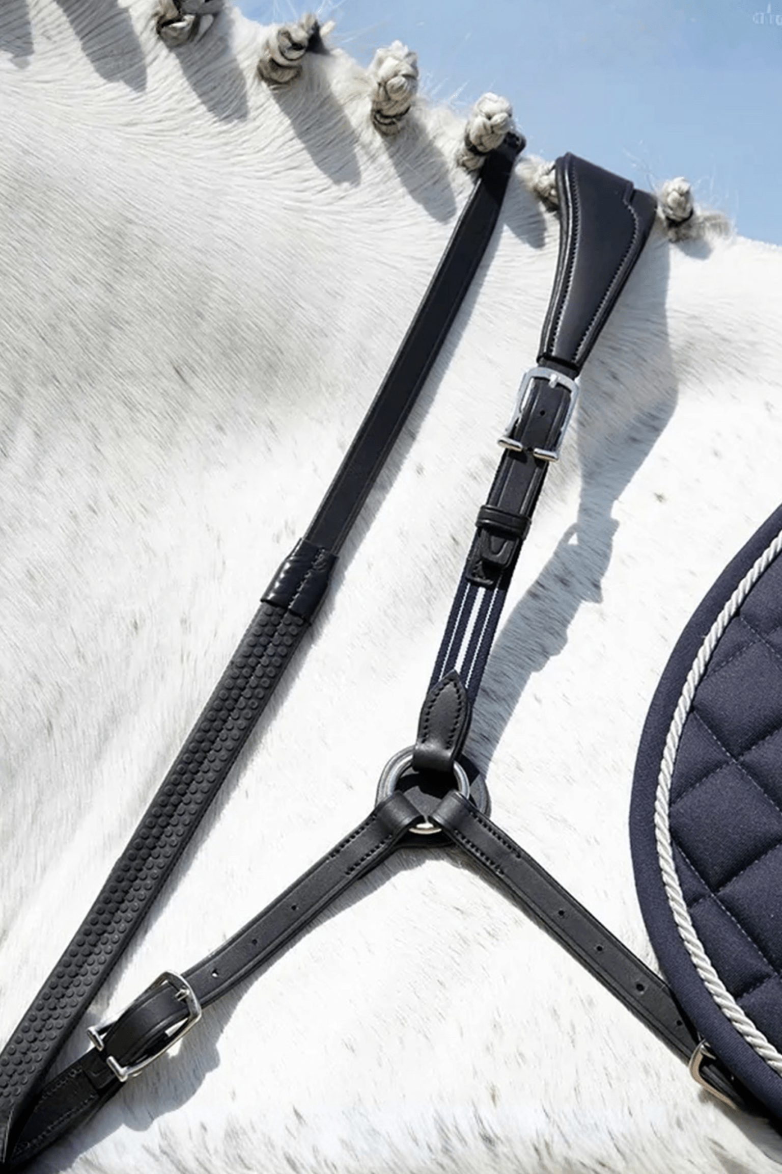 Stilfuldt fortøj fra Antarès Precision kollektionen. Fastgøres nemt til sadelgjordsstropperne eller gjorden for at give øget stabilitet. Foret med kalveskind. Spænder og ringe i rustfrit stål.