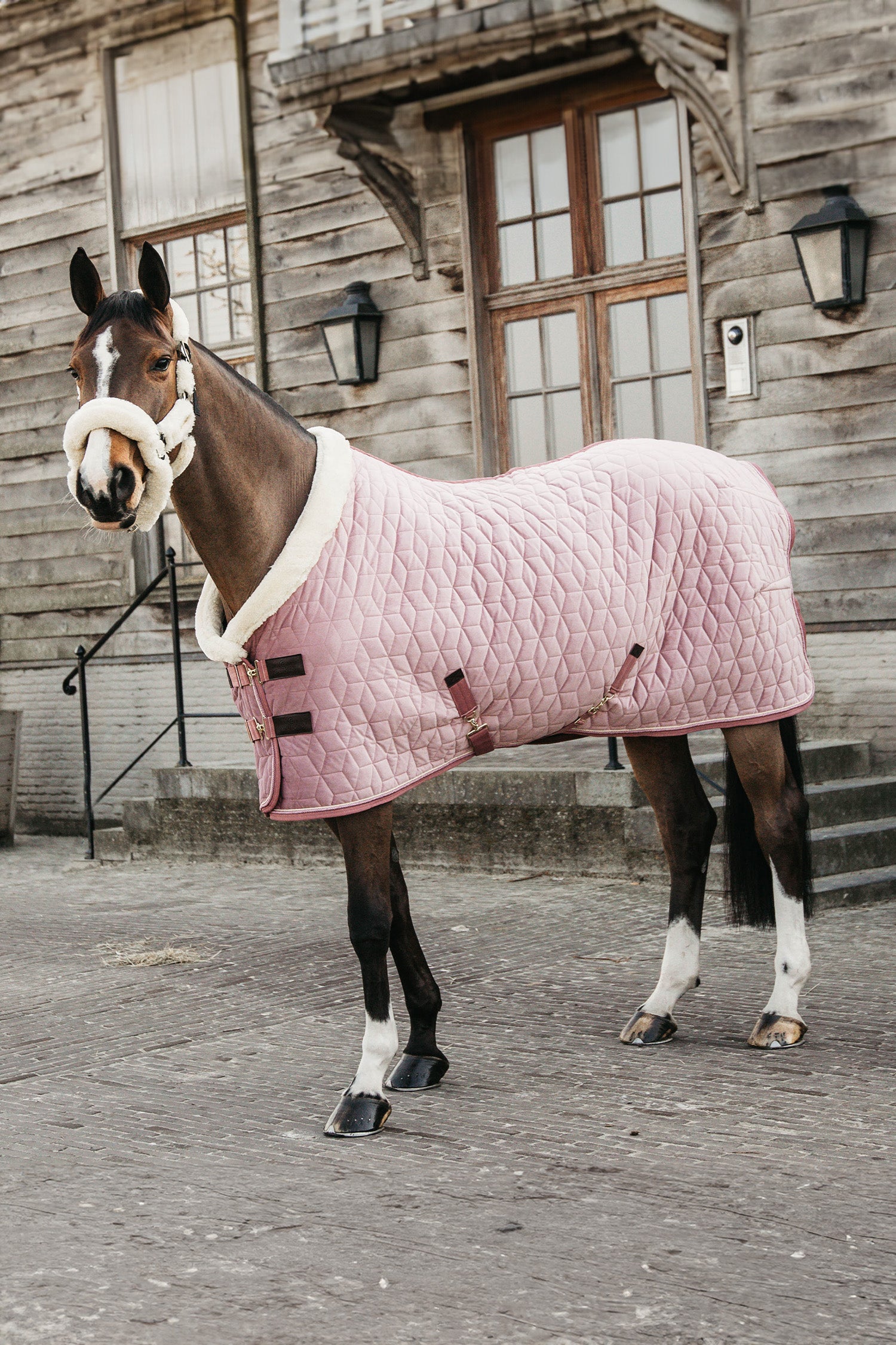 Indersiden af dækkenet har et for af kunstig kaninpels, der forhindrer slidmærker. Den kunstige kaninpels skaber også små luftlommer, som danner et isolerende lag omkring din hest og holder den ekstra varm.