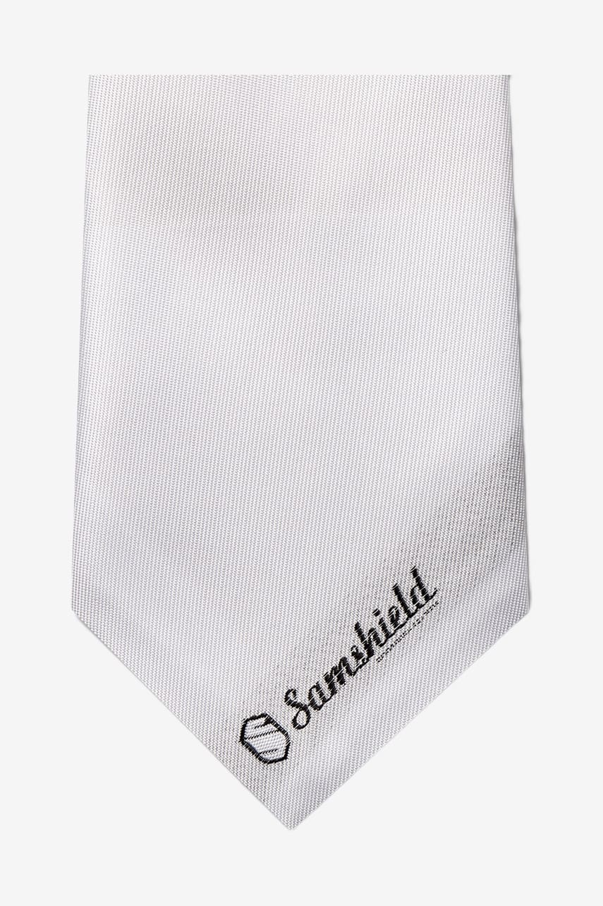 Tie in tightly woven material with a sheen. Samshield logo diagonally on the lower part. Untied.