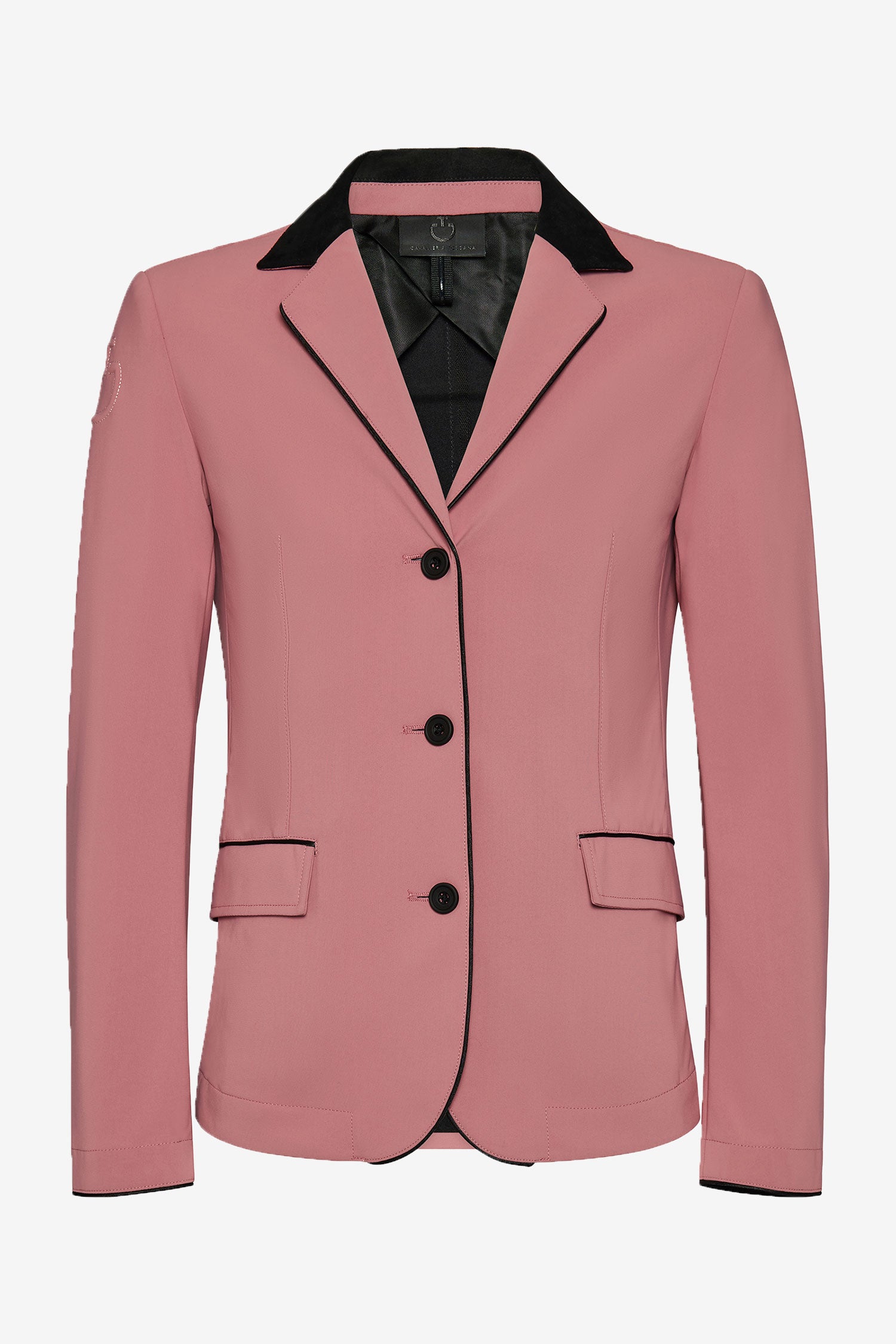 Stylish and trendy competition jacket in a junior model with an alcantara collar from Cavalleria Toscana. Piping along the entire outer edge of the jacket as well as over the pockets in the same material and color as the collar.