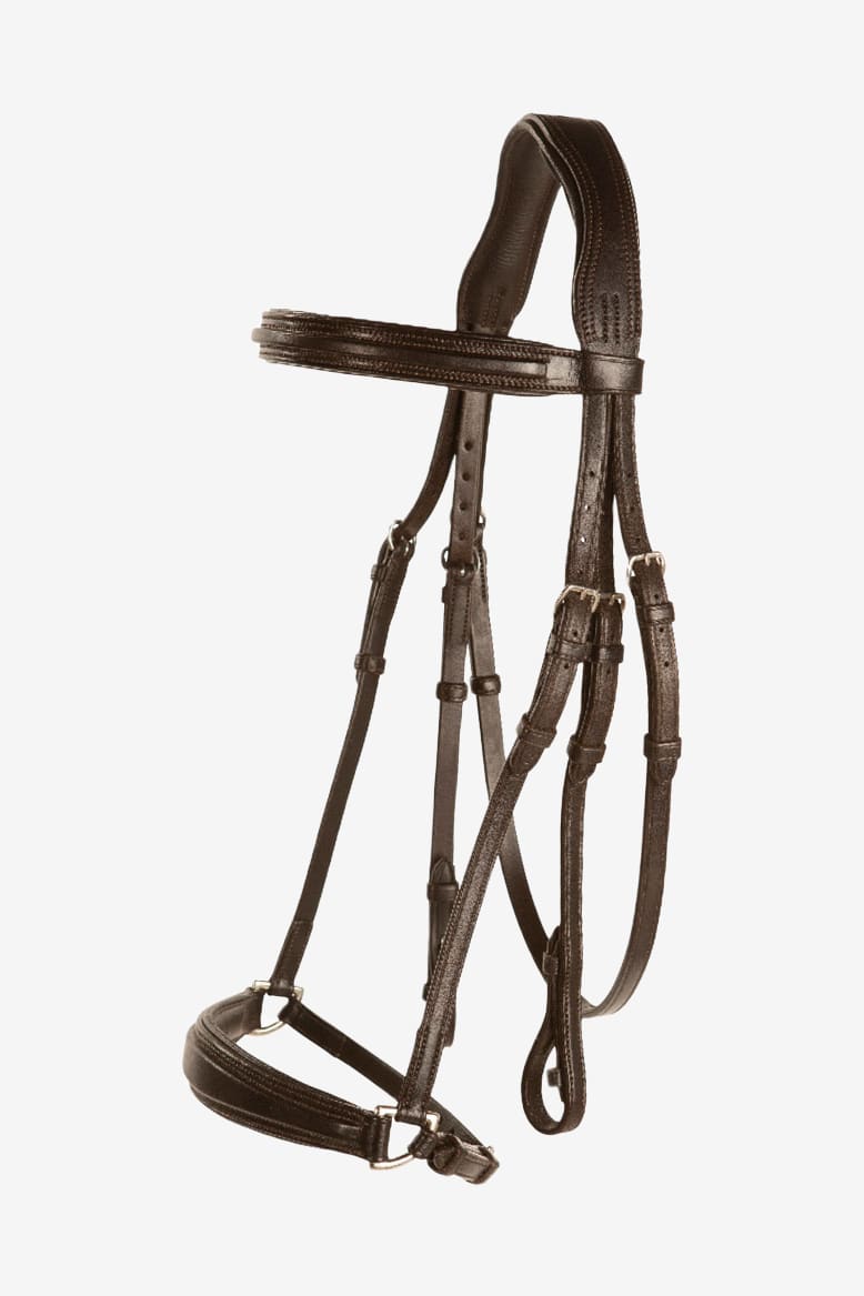 Narrow, padded headpiece designed for less pressure behind the ears. Hanoverian noseband with soft padding. Stainless steel buckles in silver.
