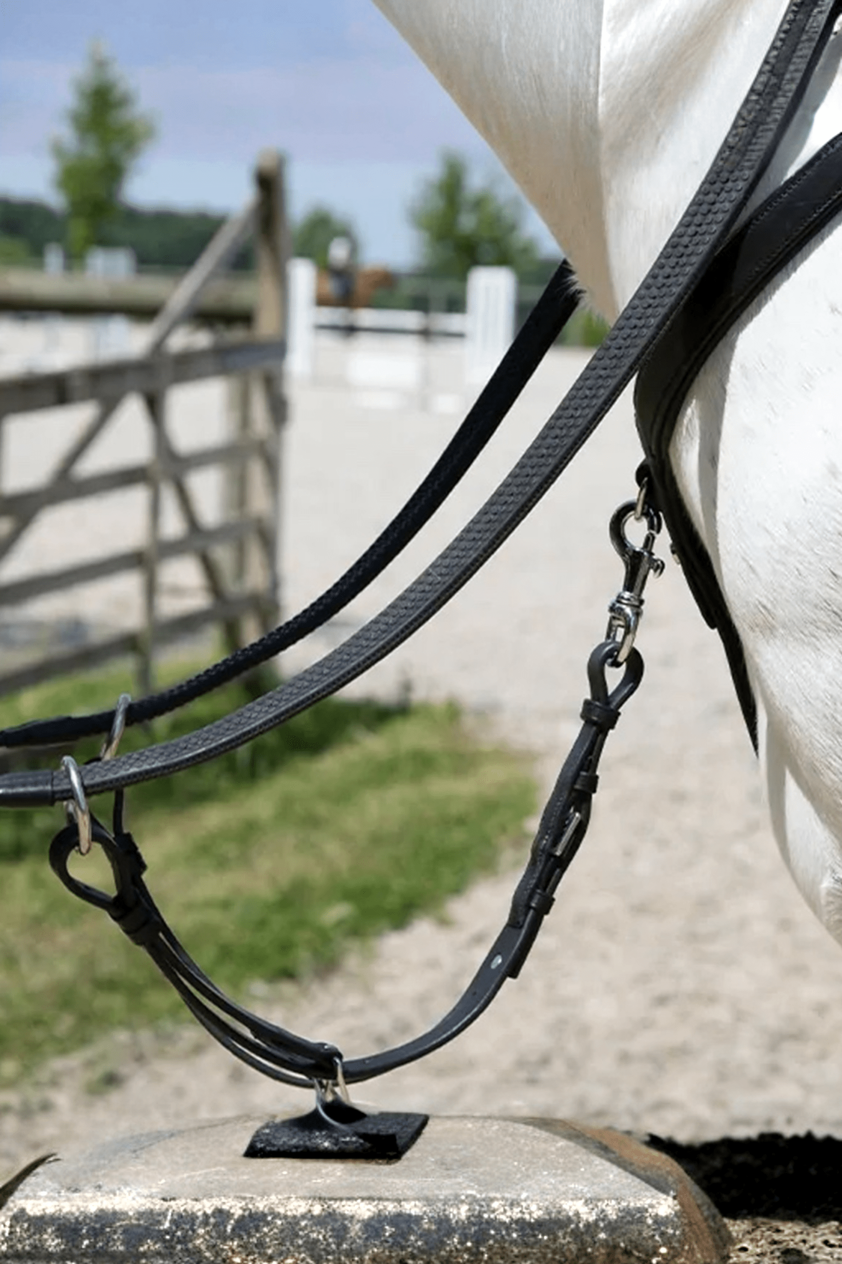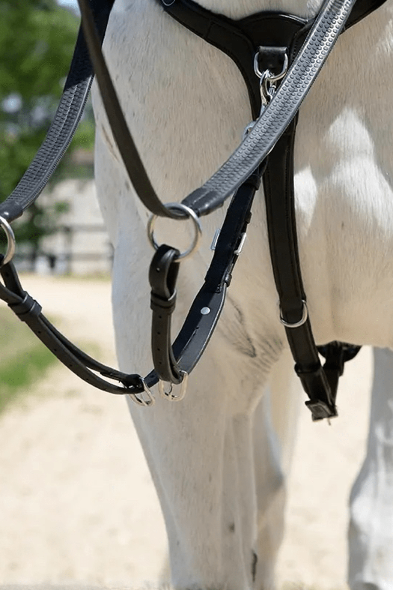 Se fixe facilement à la bricole avec un élégant mousqueton argenté. La longueur de la martingale est facile à ajuster.