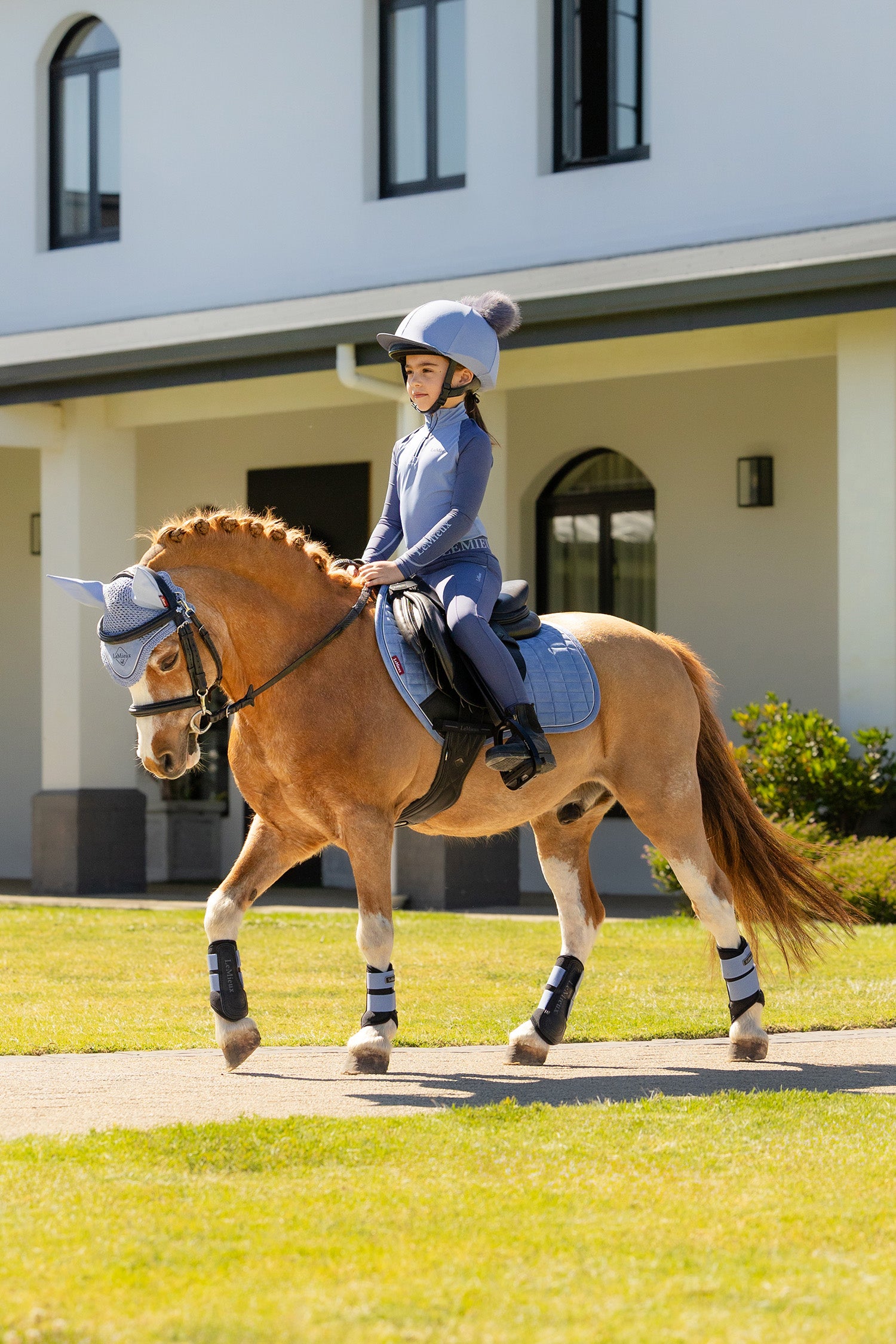 Tissu extérieur en imitation suédine avec construction stable. Intérieur en mélange de bambou pour un confort élevé, une bonne ventilation et une régulation de l'humidité. Conçu pour un contact rapproché et un ajustement optimal pour poney.