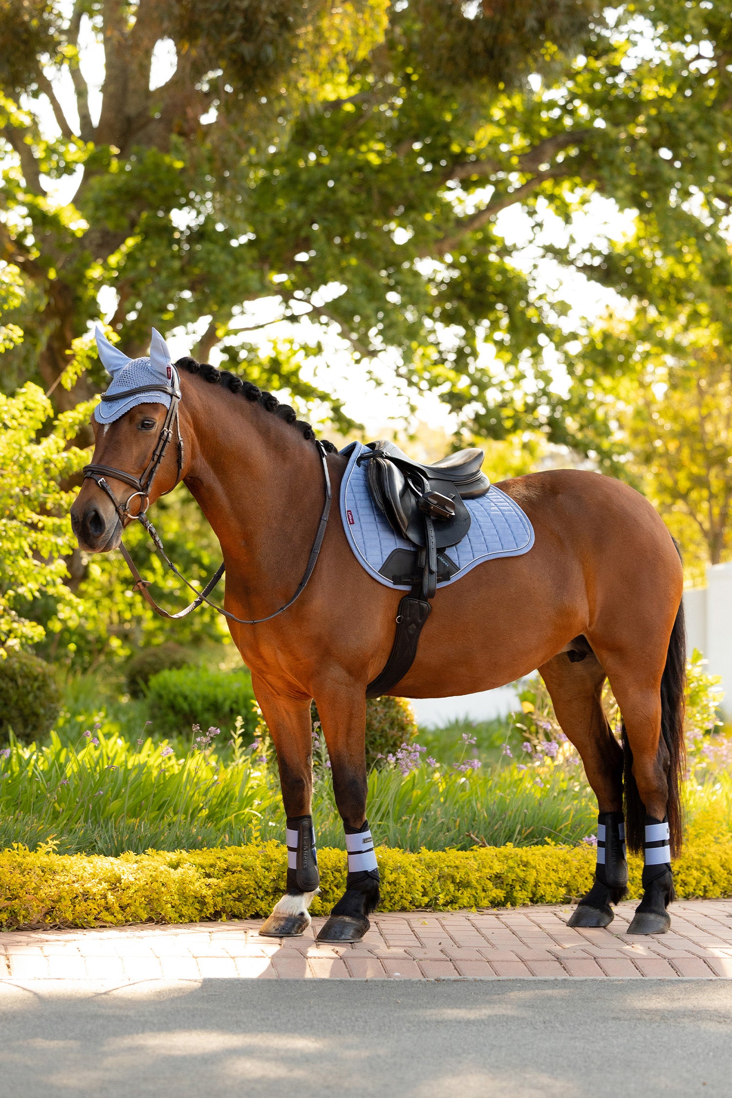 La doublure en mélange de bambou est douce, ventilée et efficace pour absorber et évacuer l'humidité, gardant le cheval au sec et à l'aise même lors de séances intensives. Le matériau réduit également les frottements et convient aux chevaux sensibles.