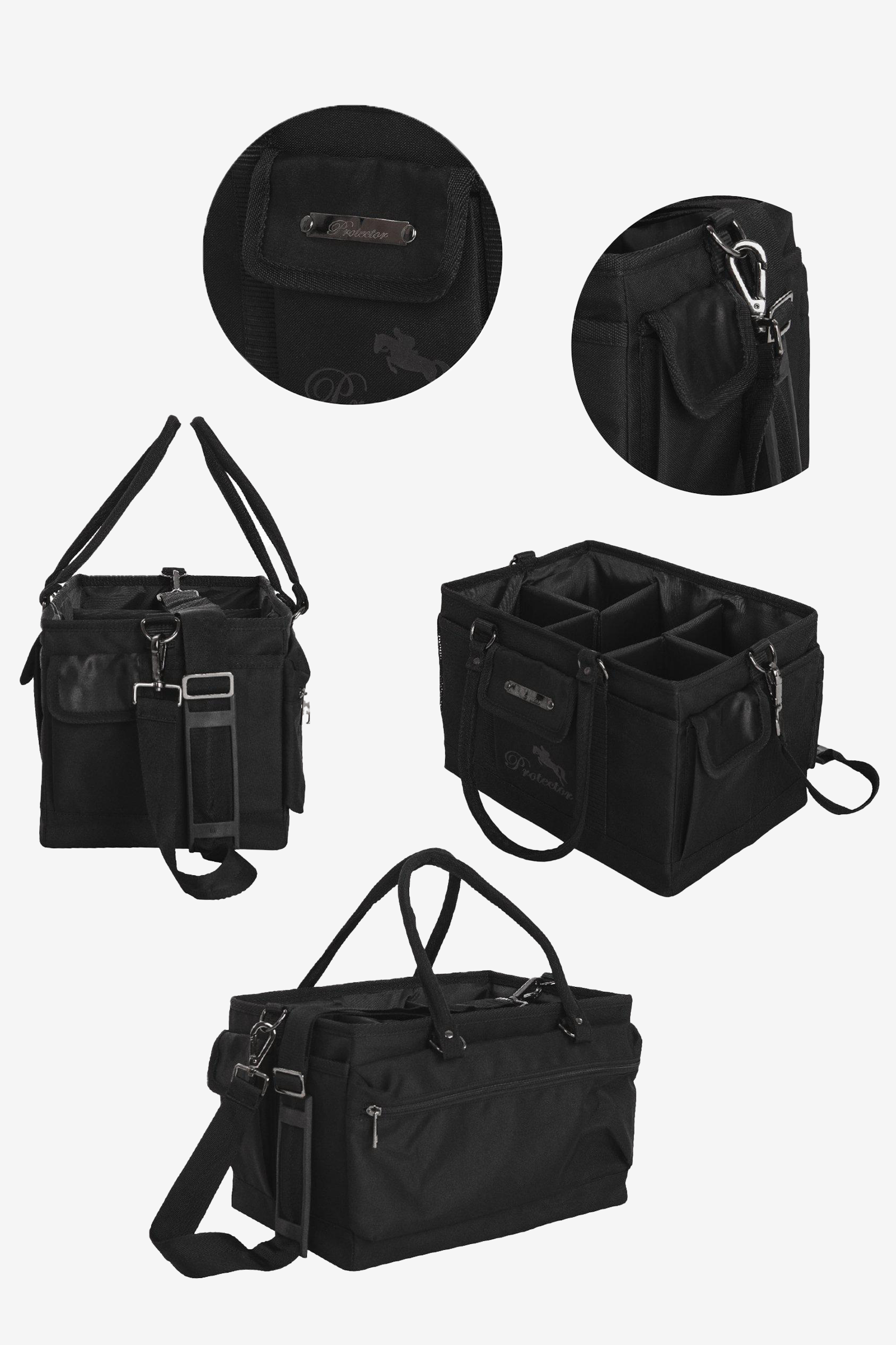 Sac de pansage pliable, pratique et robuste – La solution parfaite pour organiser et ranger vos accessoires de pansage et produits d’entretien. Avec un espace généreux et des poignées de transport résistantes, ce sac est à la fois fonctionnel et élégant. Il est équipé de plusieurs poches réglables, ce qui facilite le rangement des petits objets et accessoires.
