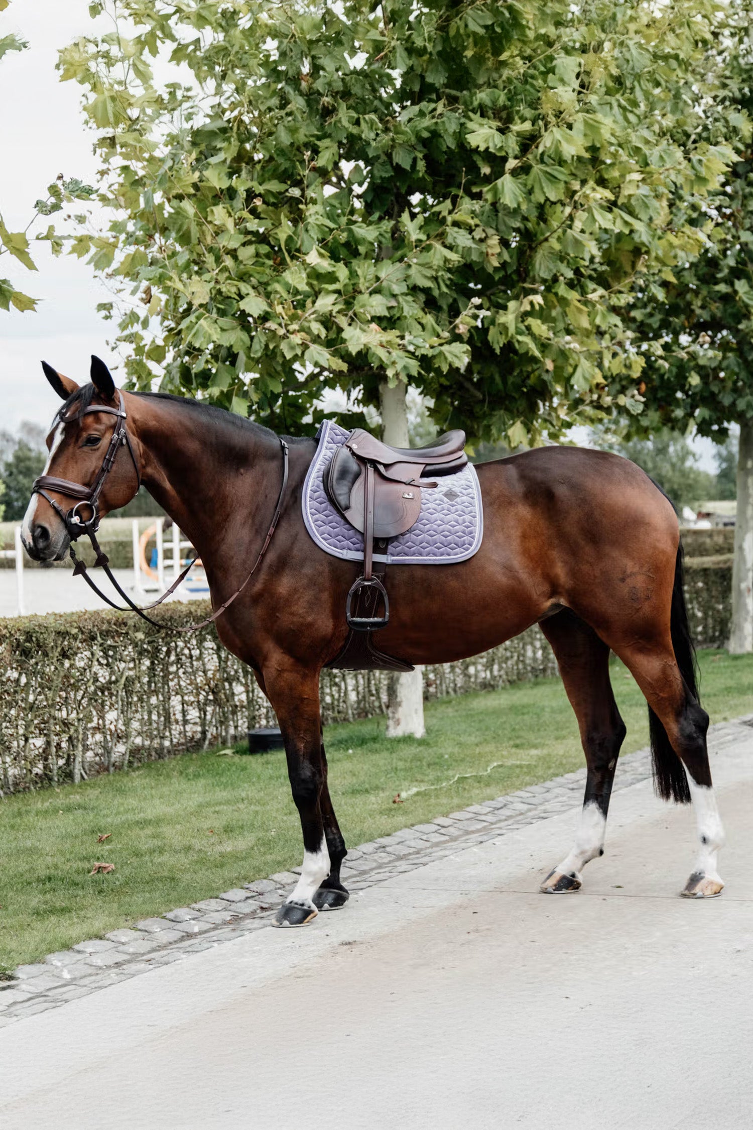 Un magnifique tapis de selle de Kentucky avec un excellent amorti pour le dos du cheval tout en protégeant contre les frottements. Design épuré avec double passepoil torsadé. L'extérieur est en velours doux et agréable, offrant une sensation très luxueuse et agréable.