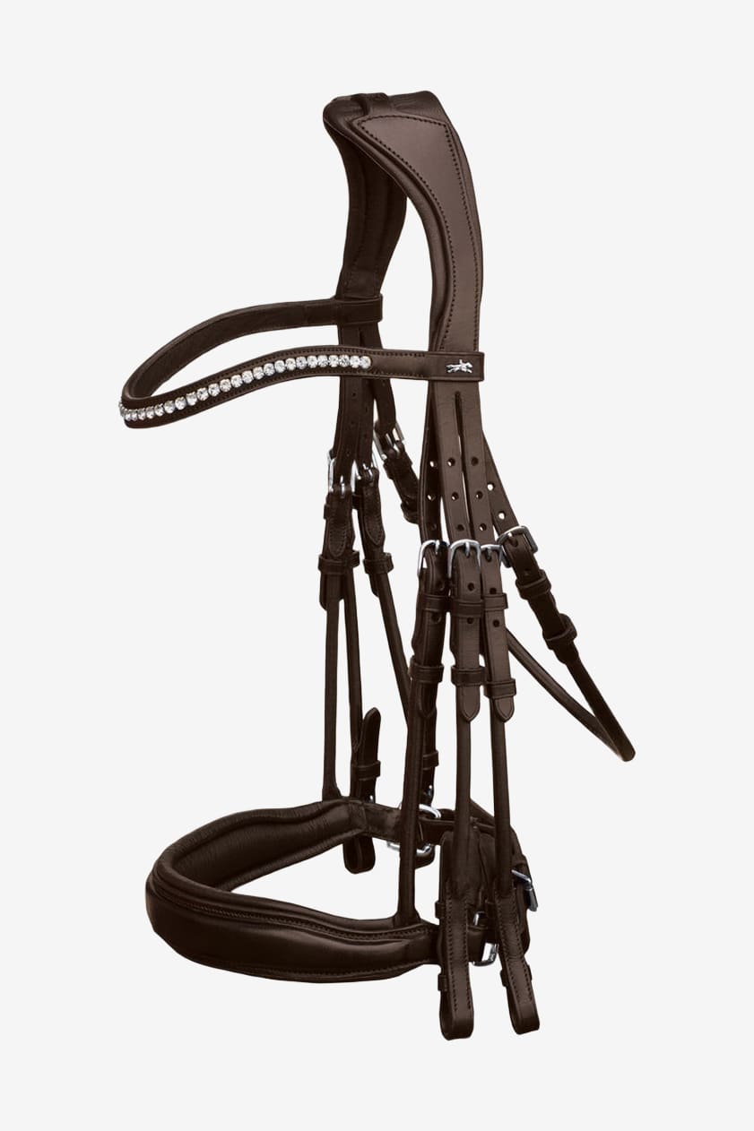 Luxueuse bride double à couture ronde de Schockemöhle, conçue de façon anatomique et fabriquée en cuir de haute qualité avec un rembourrage épais et doux.
