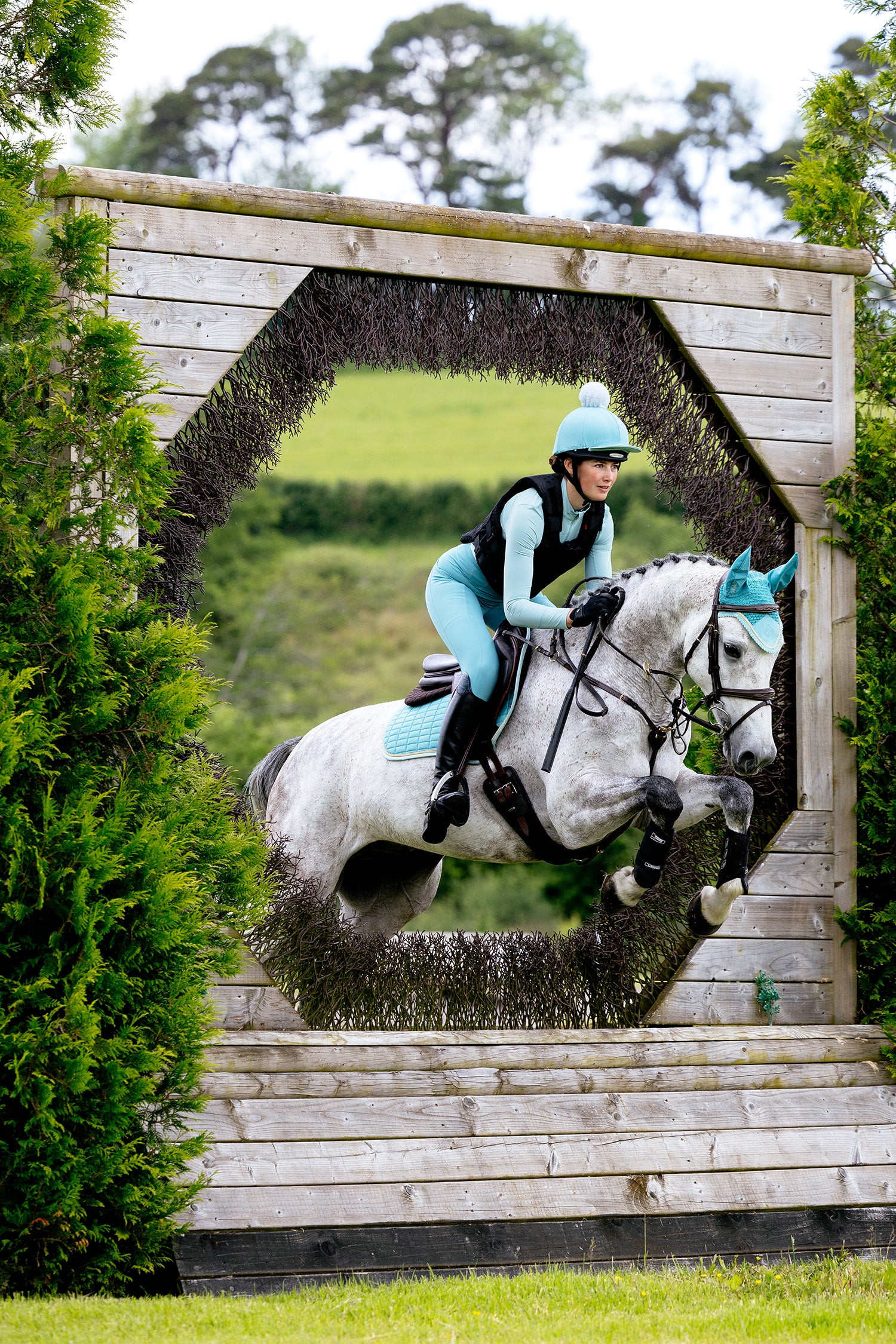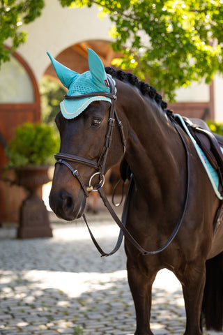 De populaire LeMieux Suede Spring Schabrak Square in de kleur Lagoon combineert een luxueus design met hoge functionaliteit – perfect voor wie wil opvallen in de springpiste met zowel stijl als kwaliteit.