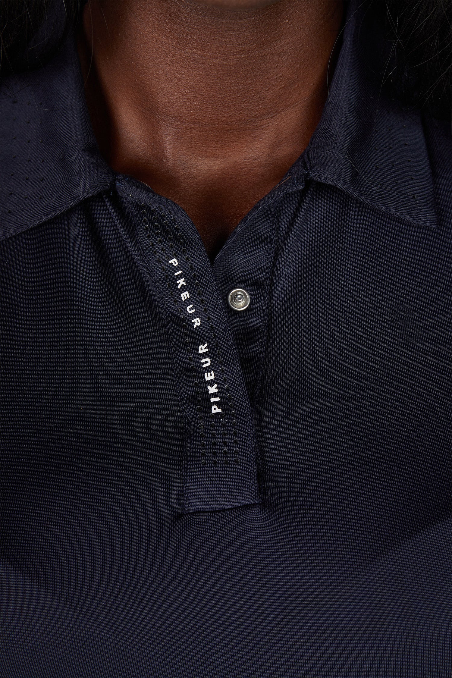Laser-gesneden details bij de kraag, mouwen en zijpanelen zorgen niet alleen voor een moderne look, maar dragen ook bij aan verbeterde ventilatie en bewegingsvrijheid. De klassieke polokraag wordt aangevuld met verborgen knopen voor een strakke en elegante afwerking.