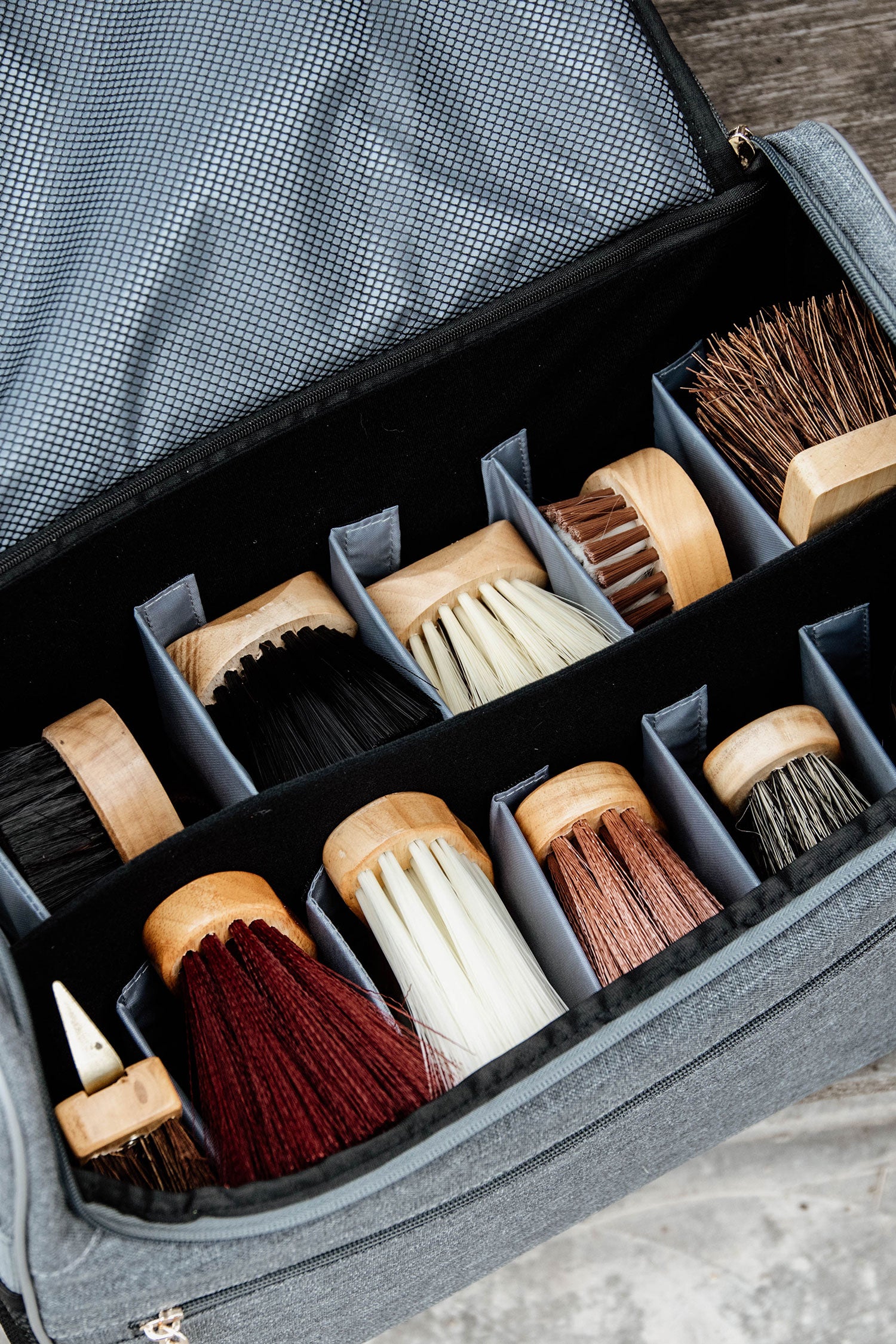 De tas heeft ook kleine voetjes zodat deze niet vies wordt wanneer hij direct op de grond staat.