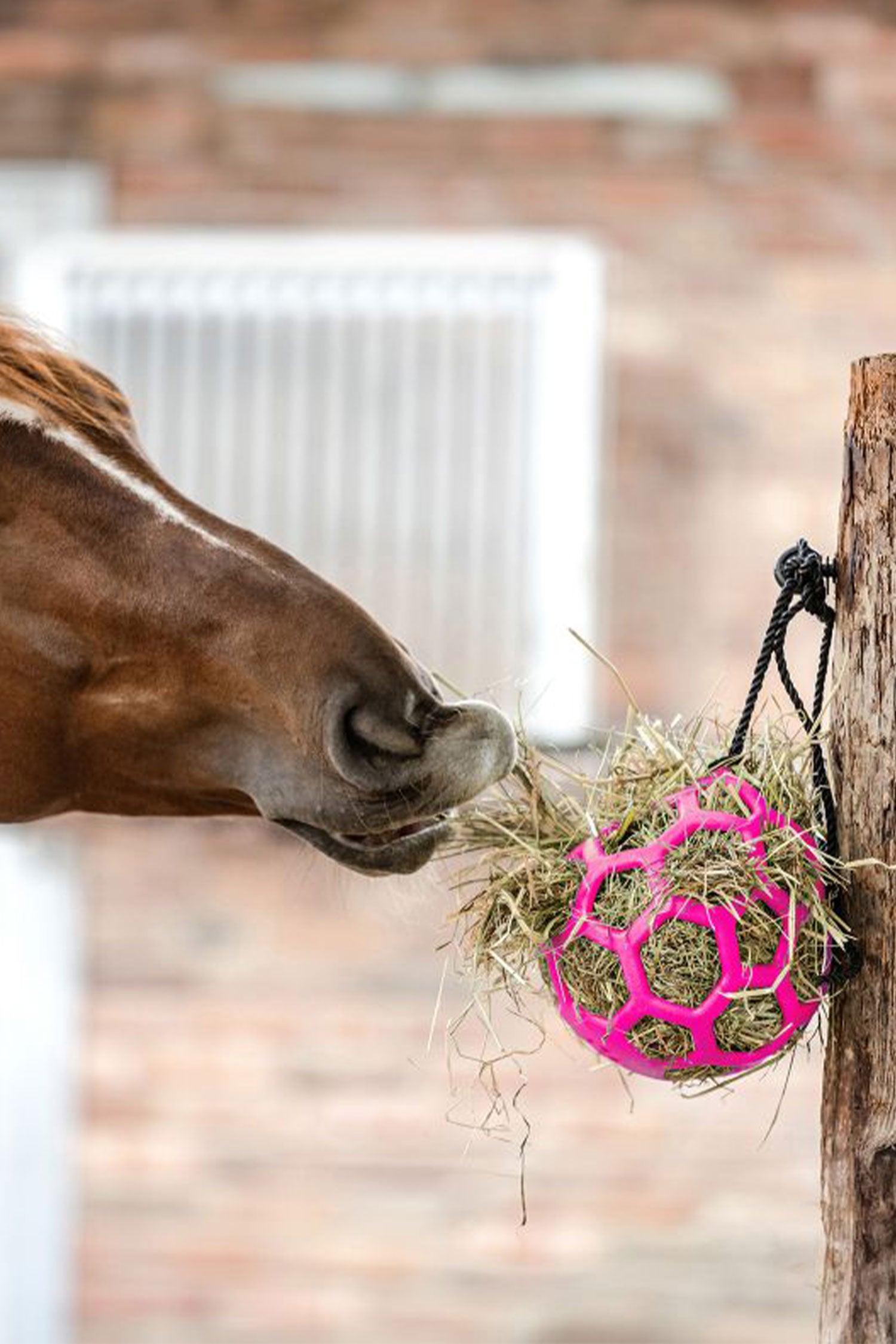 De Waldhausen hooi bal is ideaal om verveling te voorkomen en de hooi-inname te vertragen en te doseren. Dit is bijzonder vriendelijk voor de maag en houdt het paard urenlang bezig. De bal kan eenvoudig worden gevuld met hooi en andere lekkernijen, zoals wortels en stukjes appel, en worden opgehangen met de meegeleverde 2 m lange riem. Hij is volledig gemaakt van thermoplastisch rubber, waardoor hij extra flexibel en duurzaam is.