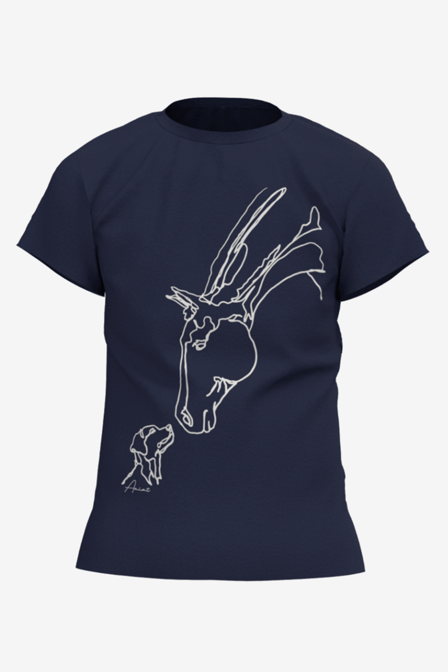 Schönes Shirt mit einem gemütlichen Motiv eines Pferdes und eines Hundes auf der Vorderseite. Perfekt für den Alltag oder zum Reiten. Hergestellt aus weichem Jersey-Stoff und sorgt den ganzen Tag für angenehmen Tragekomfort.