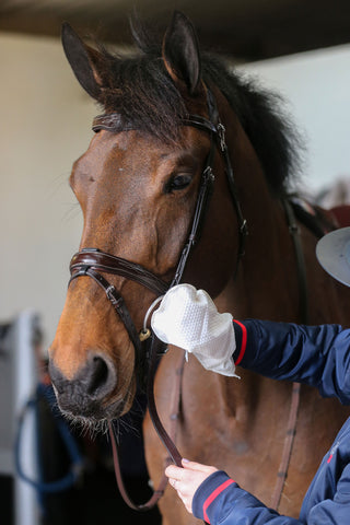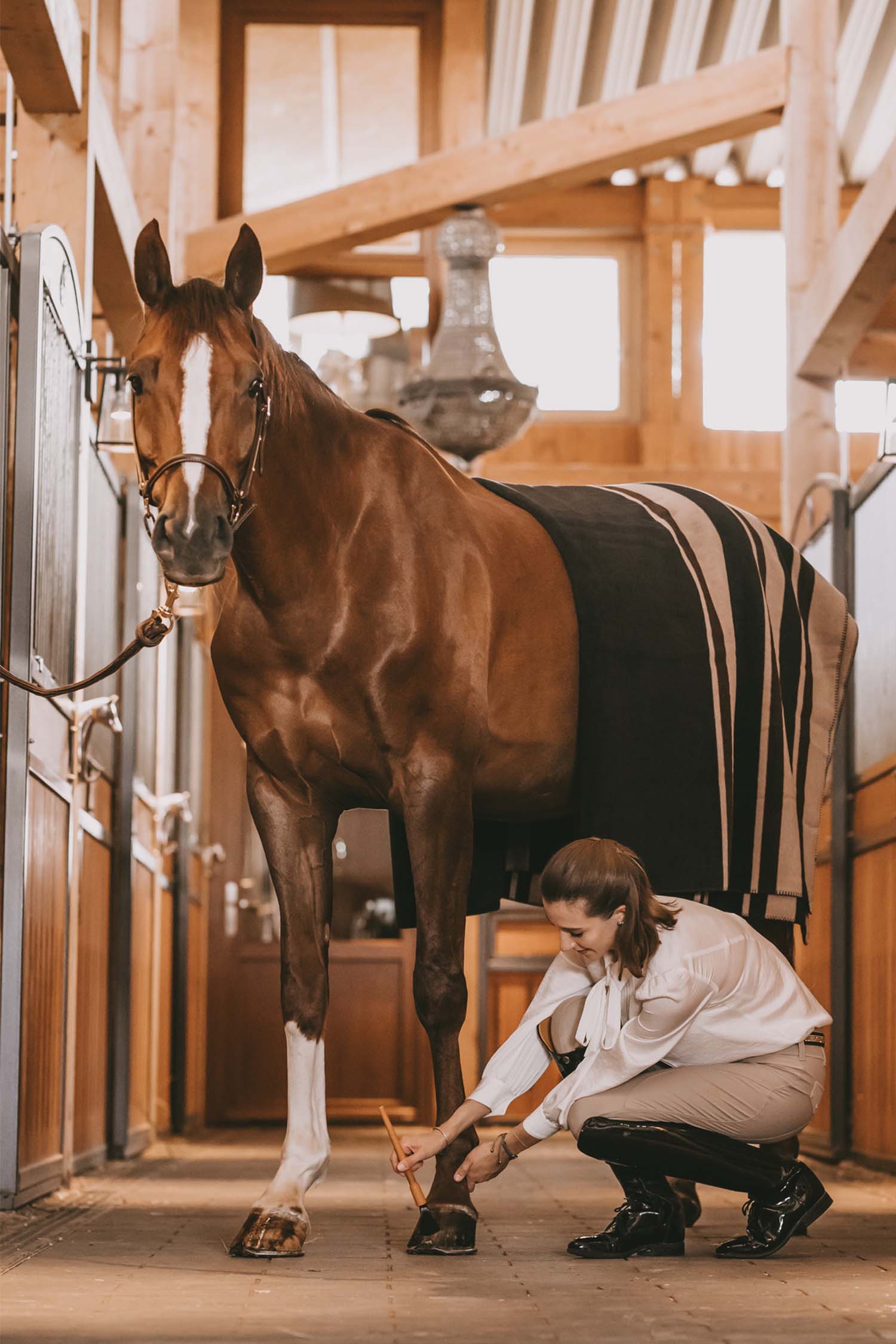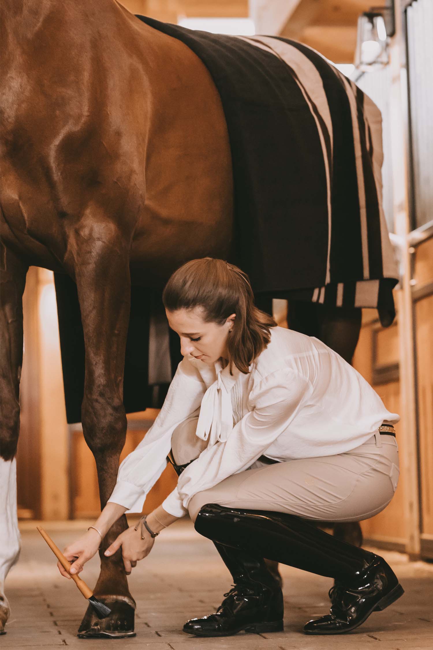 Mit einem anatomisch geformten Griff, sodass Sie die Bürste leicht halten und die Hufe Ihres Pferdes einfetten können.