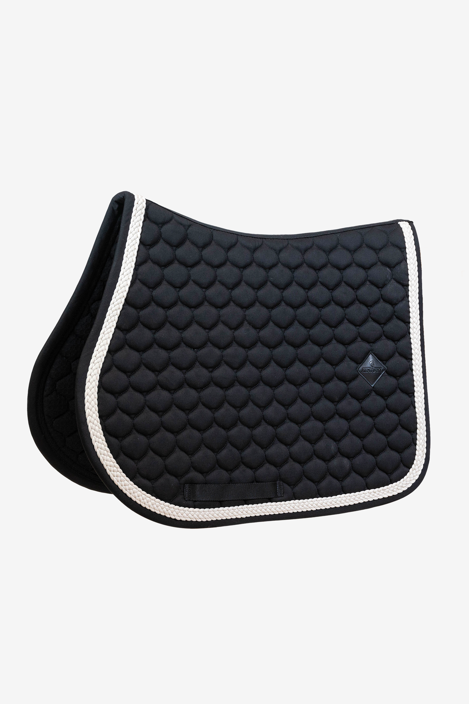 Eine sehr stilvolle und zugleich funktionale Sattelunterlage aus den besten Materialien mit einem klassischen Look dank der geflochtenen Kordel.