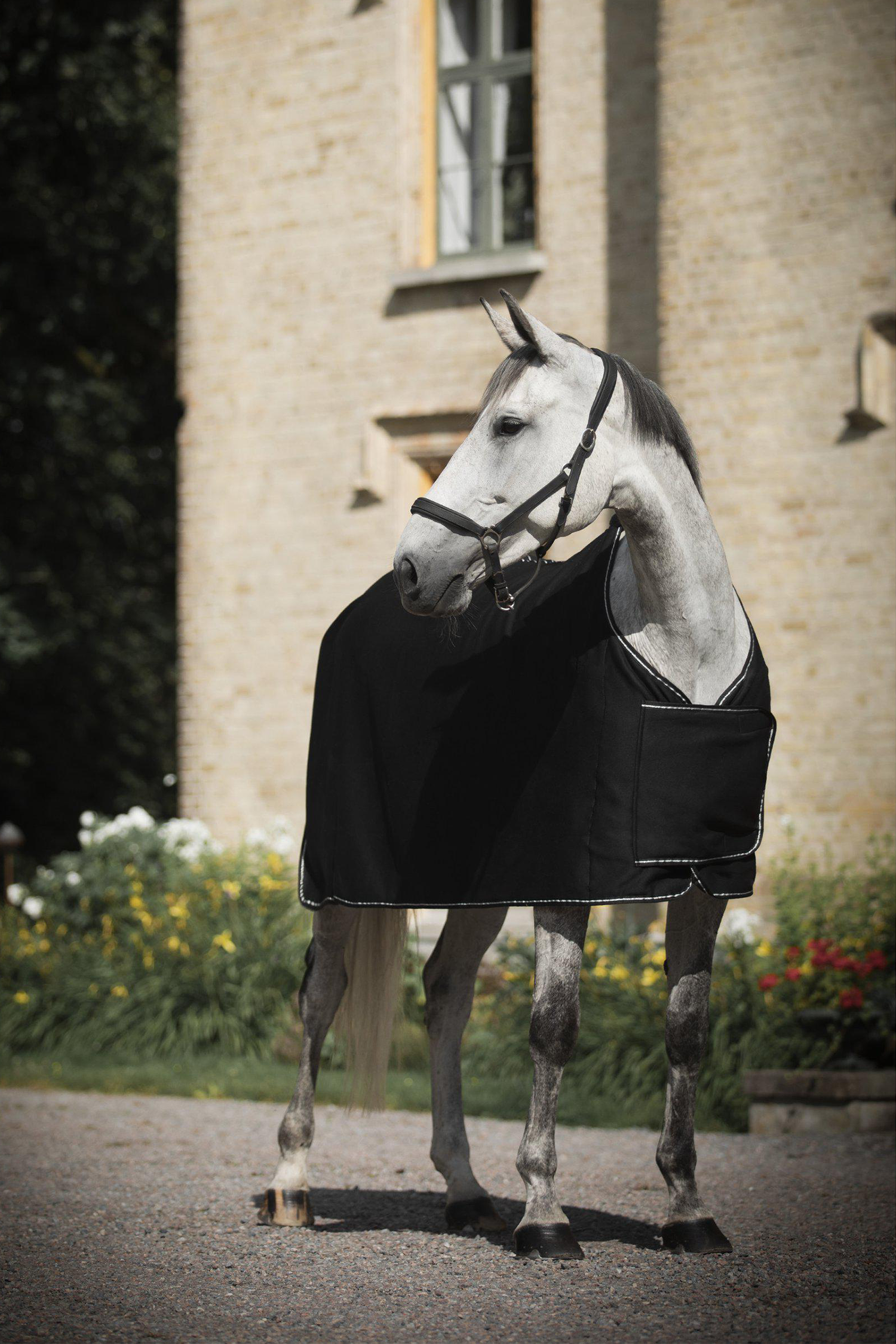 Die Decke verfügt über doppelte Brustverschlüsse, die hinter einer stilvollen Front- und Brustplatte verborgen sind. Dies sorgt für einen exklusiven Eindruck und bietet eine perfekte Fläche für Bestickungen mit Namen oder Logo. Der versteckte, abnehmbare Bauchgurt hält die Decke sicher an Ort und Stelle, ohne das Gesamtbild zu stören.