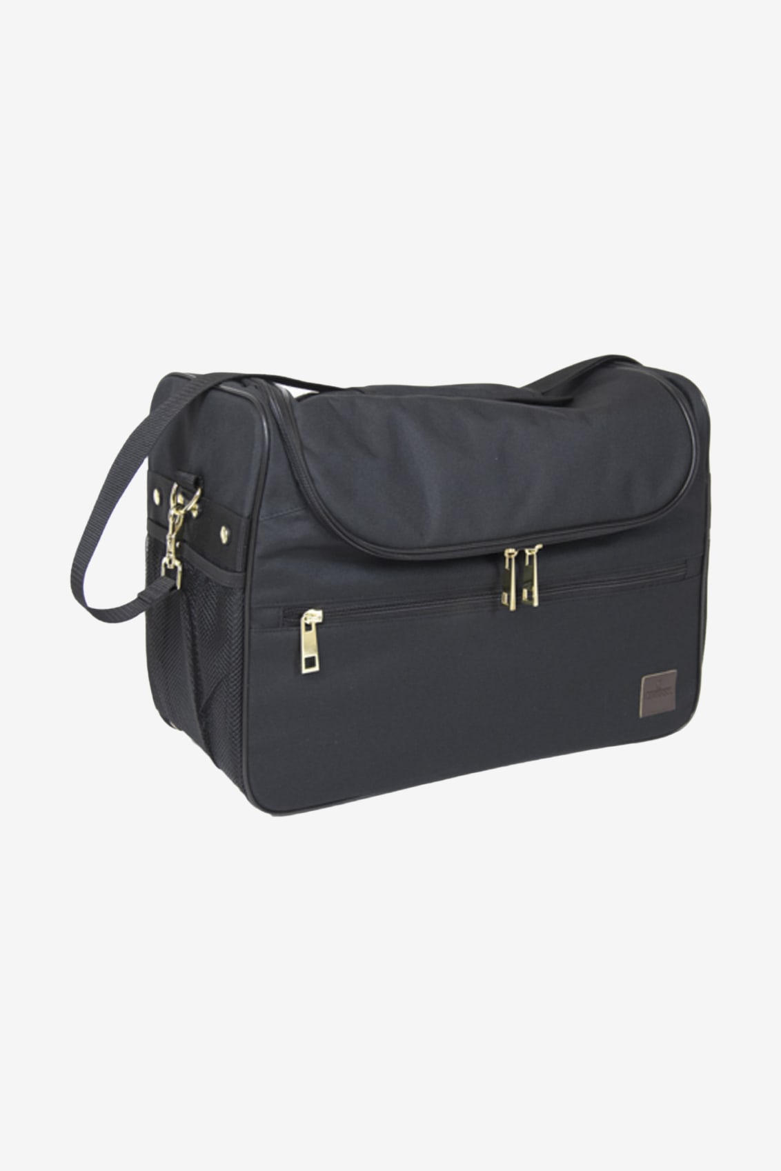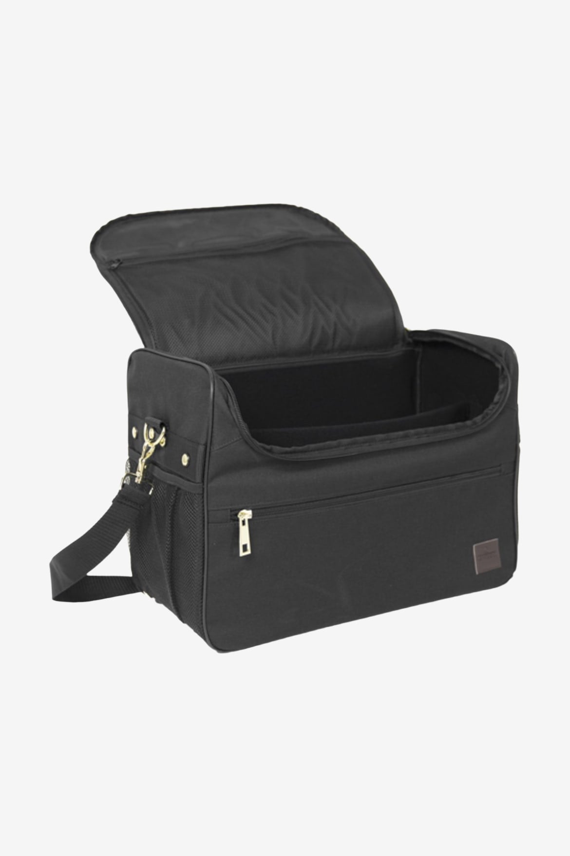 Die Größe der Tasche ermöglicht es auch, Sprühflaschen problemlos im Inneren unterzubringen. Die Tasche ist mit mehreren Taschen ausgestattet. Zwei Mesh-Taschen an den Seiten der Tasche. Eine kleinere Innentasche für kleines Zubehör. Auf der Vorderseite befindet sich eine größere Tasche mit einem messingfarbenen Reißverschluss.
