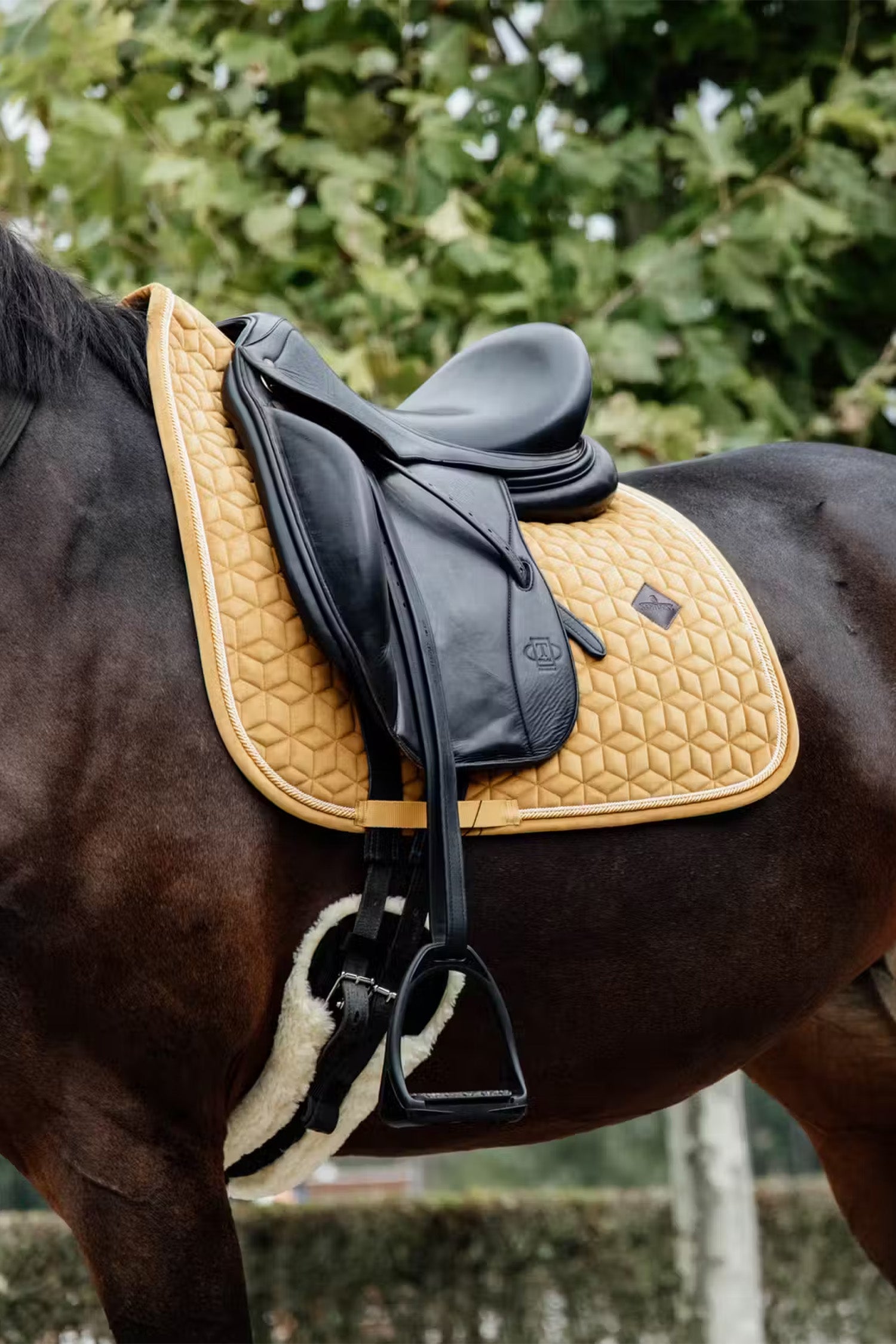 Eine fantastische, wunderschöne Schabracke von Kentucky mit hervorragender Polsterung für den Pferderücken und gleichzeitigem Schutz vor Reibung. Schlichtes Design mit doppelt gedrehter Kordel. Die Außenseite besteht aus gemütlichem und weichem Samt, der ein sehr luxuriöses und angenehmes Gefühl vermittelt.