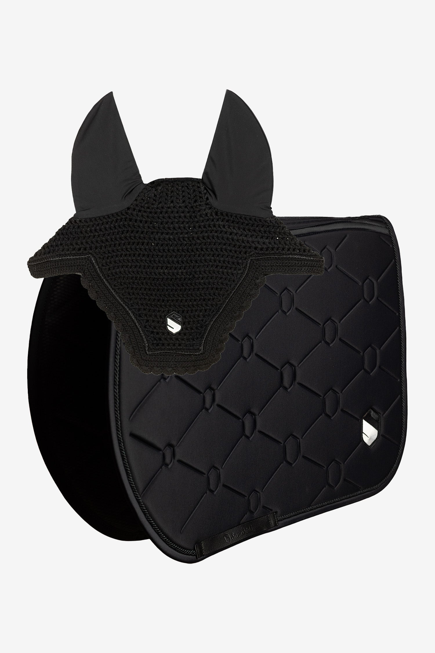 Zusammen schaffen Schabracke und Fliegenhaube einen harmonischen, technischen und exklusiven Look für Training und Turnier. Eine ideale Wahl für Reiter, die ein durchdachtes, passendes Set wünschen, bei dem Leistung, Komfort und Eleganz Hand in Hand gehen.