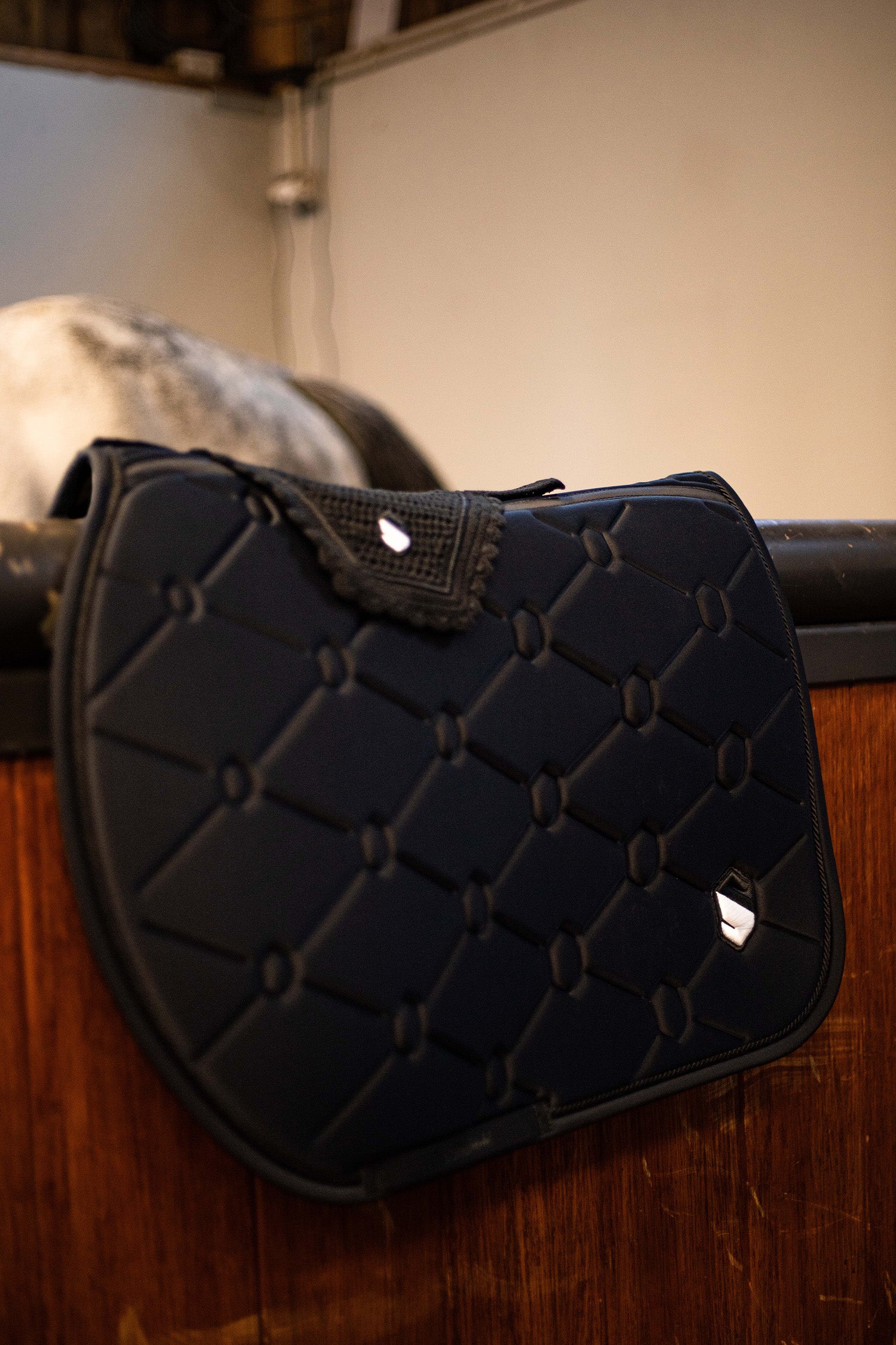 Dieses passende Set mit Samshield Schabracke und Fliegenhaube vereint höchste technische Funktion mit stilvoller Eleganz. Die Schabracke wurde mit Fokus auf den Komfort des Pferdes und die Stabilität des Sattels entwickelt, mit Materialien und einem Design, die helfen, den Druck gleichmäßig zu verteilen und einen engen, ausgewogenen Kontakt zu ermöglichen.