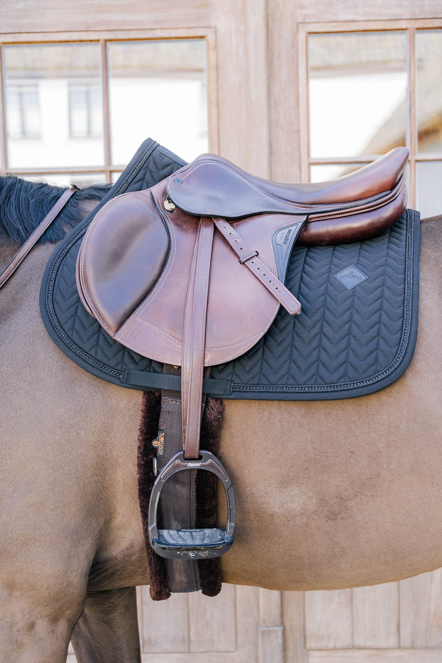 Ge din häst en elegant och iögonfallande look med Kentucky Saddle Pad Metal Chain – ett schabrak som kombinerar stil, komfort och funktion. Den unika metallkedjan omgiven av ett skimrande kantband ger en sofistikerad finish som verkligen får dig att sticka ut på både träning och tävling.