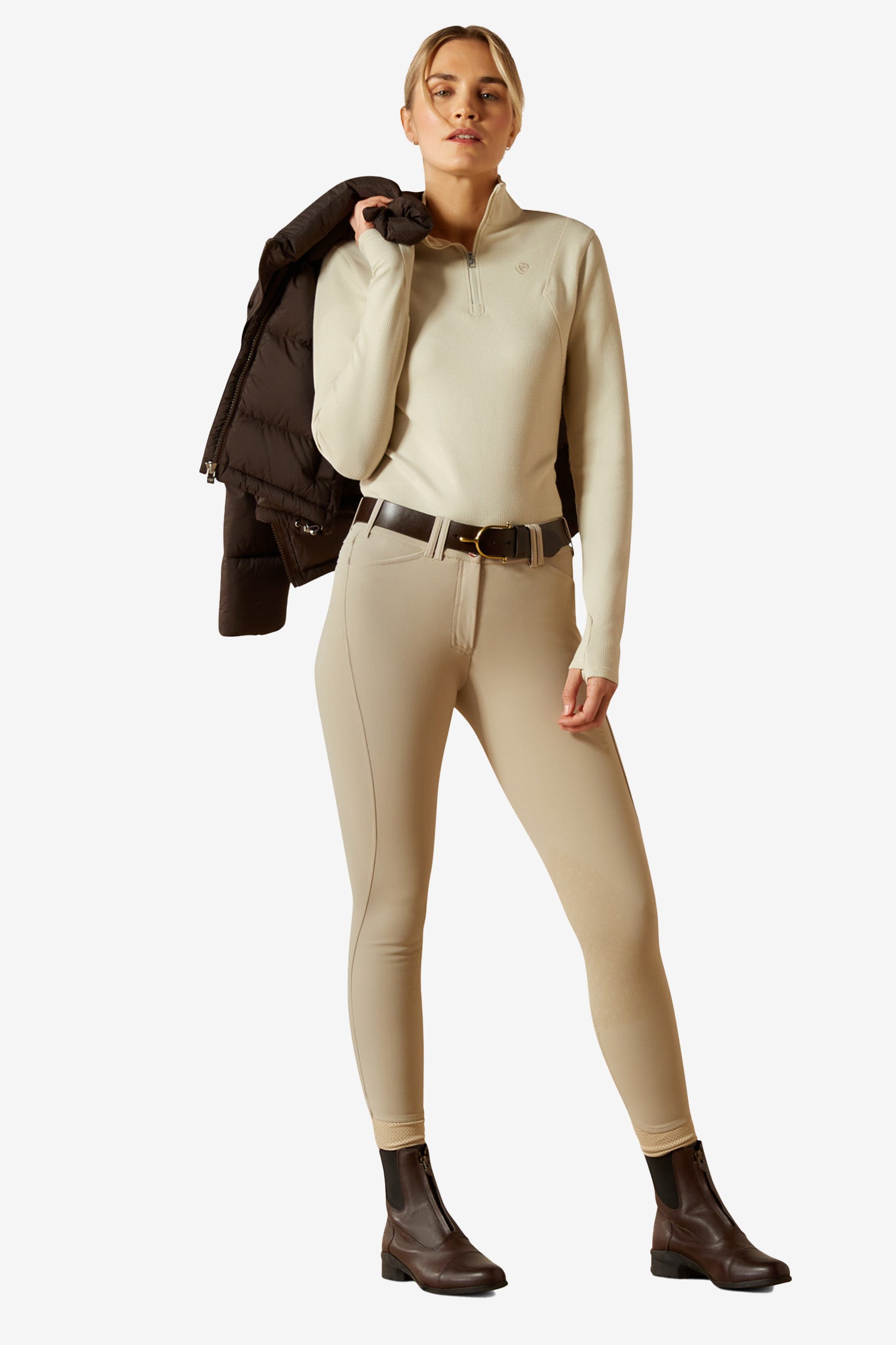 Tillverkad i ett mjukt, lätt borstat funktionsmaterial som känns behagligt mot huden och ger extra värme. Det strukturerade tyget med subtil glans ger ett exklusivt uttryck, medan AriatTEK®-teknologin håller dig bekväm oavsett väder. Med Moisture Movement Technology™ transporteras fukt bort från kroppen så att du håller dig torr under hela ridpasset.