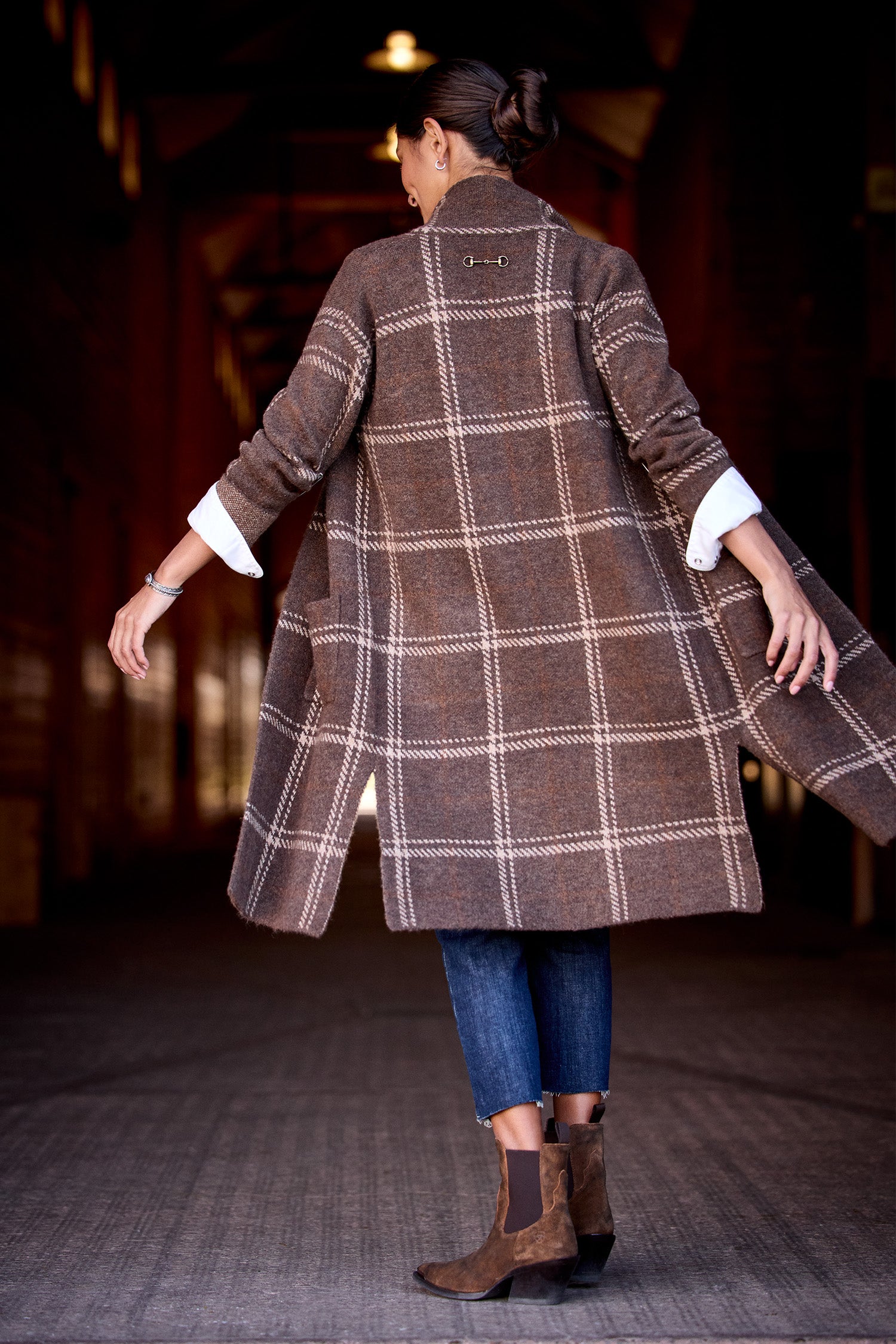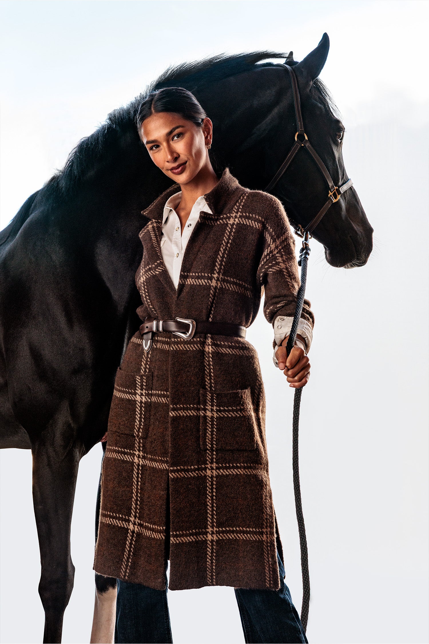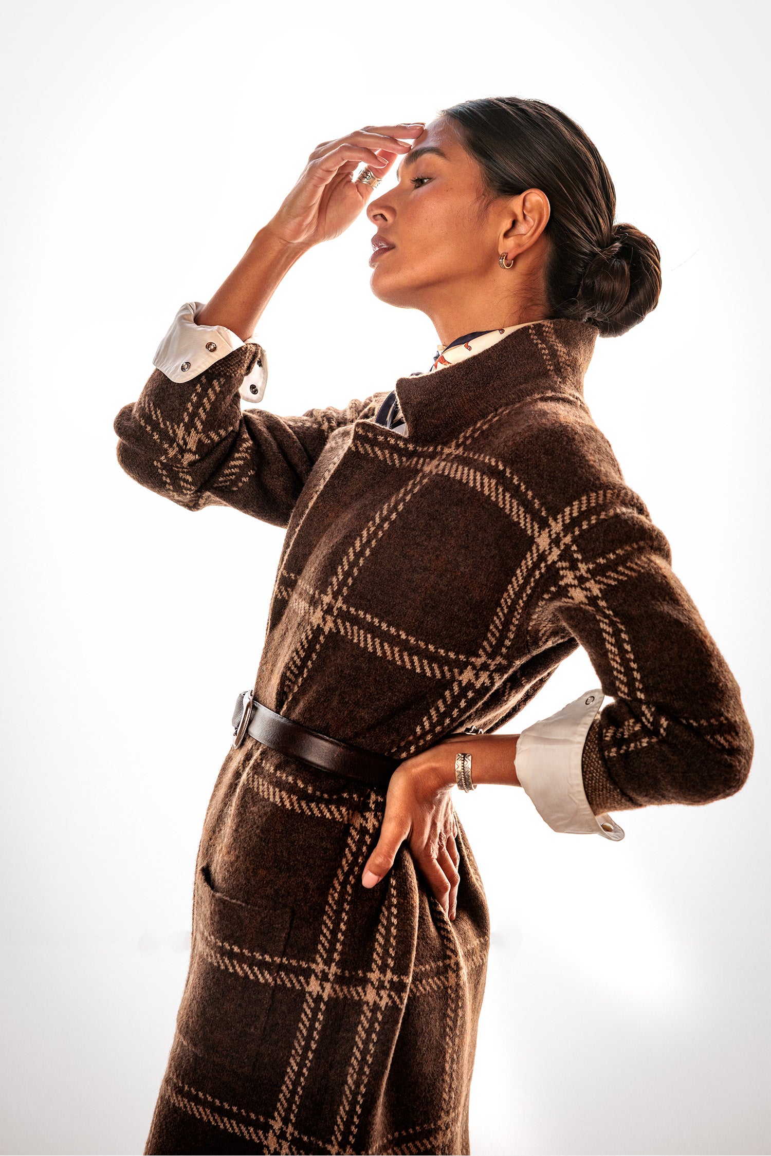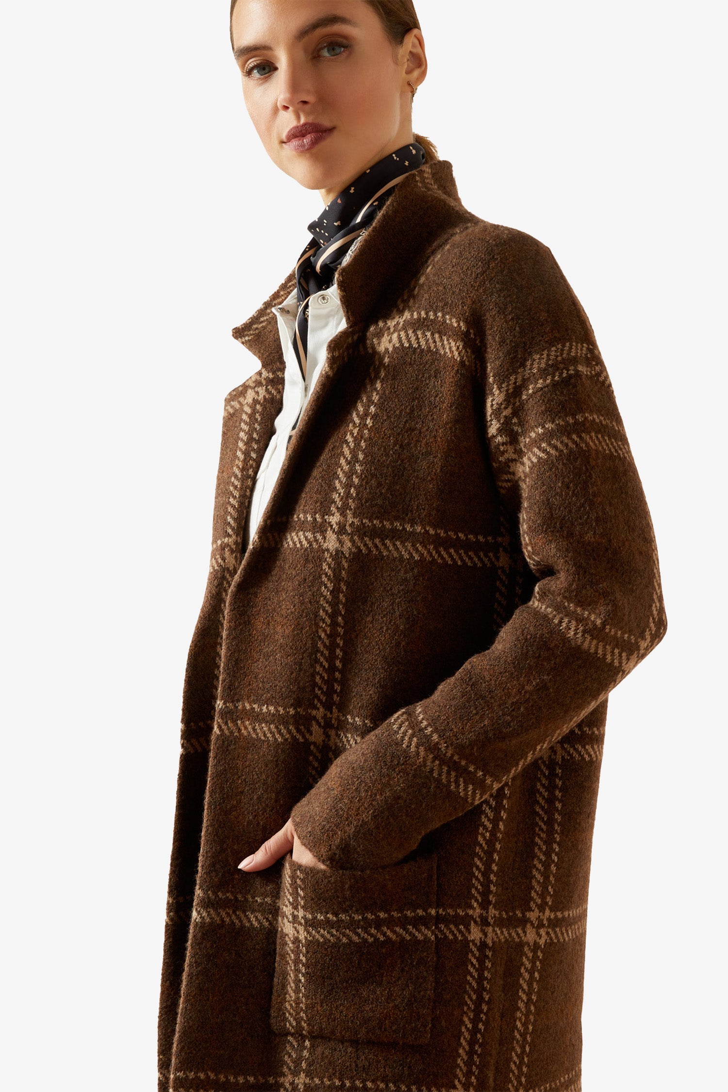 Upptäck den perfekta oversized-koftan för höst och vinter. Den här långa, varma koftan i en lyxig och etiskt framtagen ullblandning håller dig bekväm även under kyliga dagar. Det klassiska rutmönstret och den avslappnade passformen gör den enkel att styla både till vardags och mer uppklädda tillfällen. Lyft looken med skjorta och bälte – för en tidlös och chic stil.