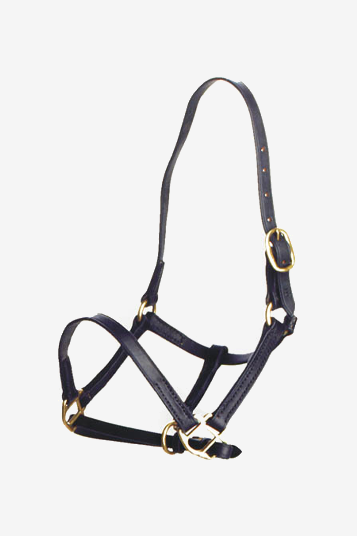 Fölgrimma från Globus. Lädergrimma för föl. Brunt läder med spännen i mässing. Justerbar över nacken och nos.