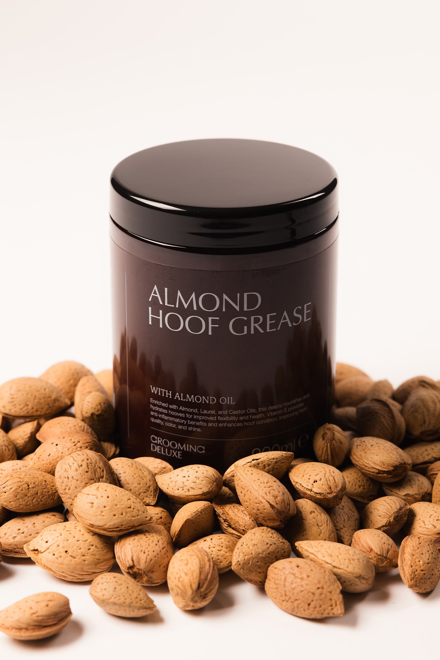 Närande hovfett med mandelolja för starka och friska hovar. Grooming Deluxe Almond Hoof Grease är ett premium hovfett som vårdar, skyddar och stärker hovarna på djupet. Med en rik blandning av naturliga ingredienser och mandelolja bidrar det till att bevara hovens fuktbalans och elasticitet – året om.
