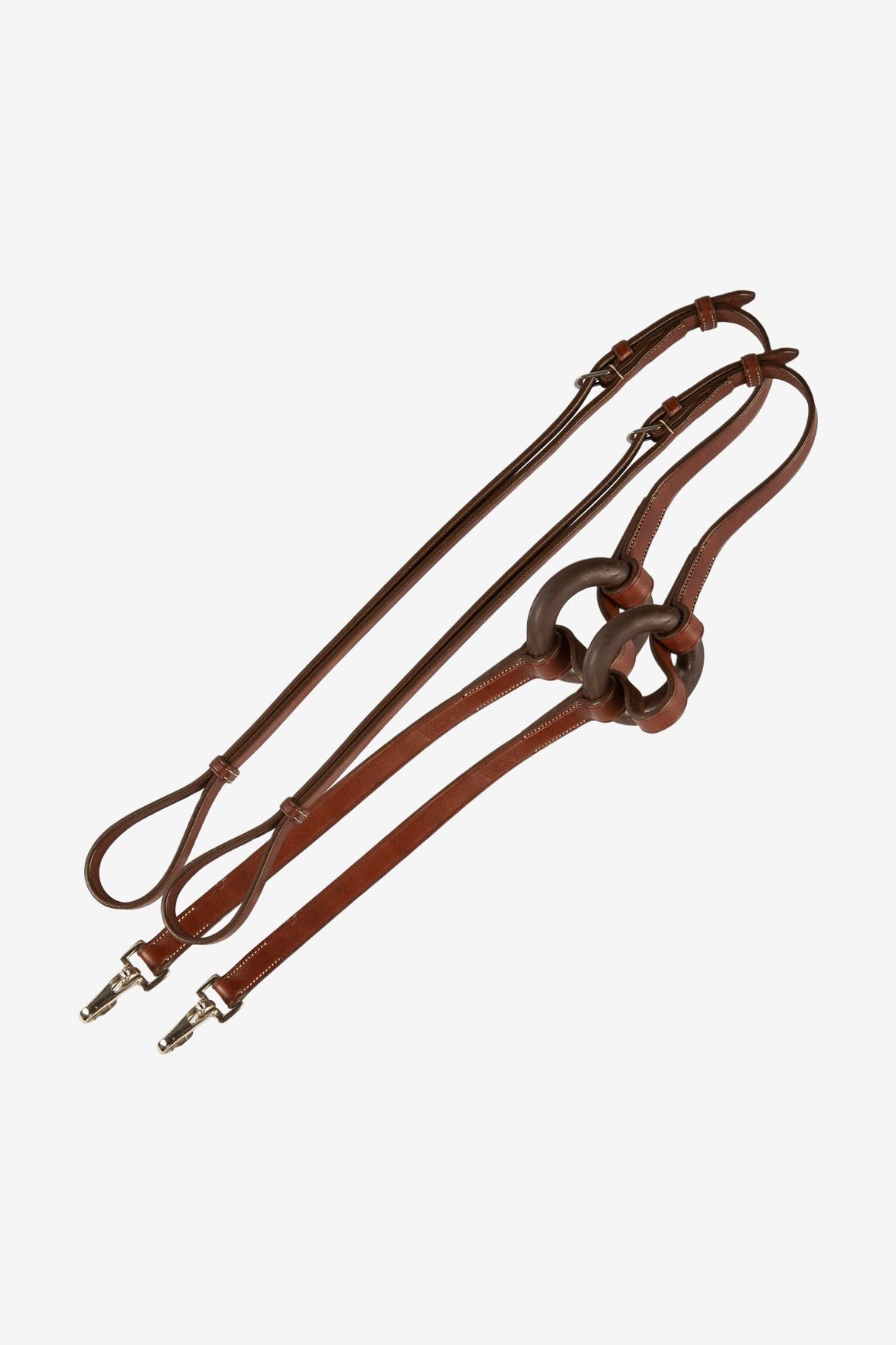 Inspänningstyglarna är tillverkad i vegetabiliskt garvat amerikanskt läder. Kraftiga gummiringar och rostfria beslag.