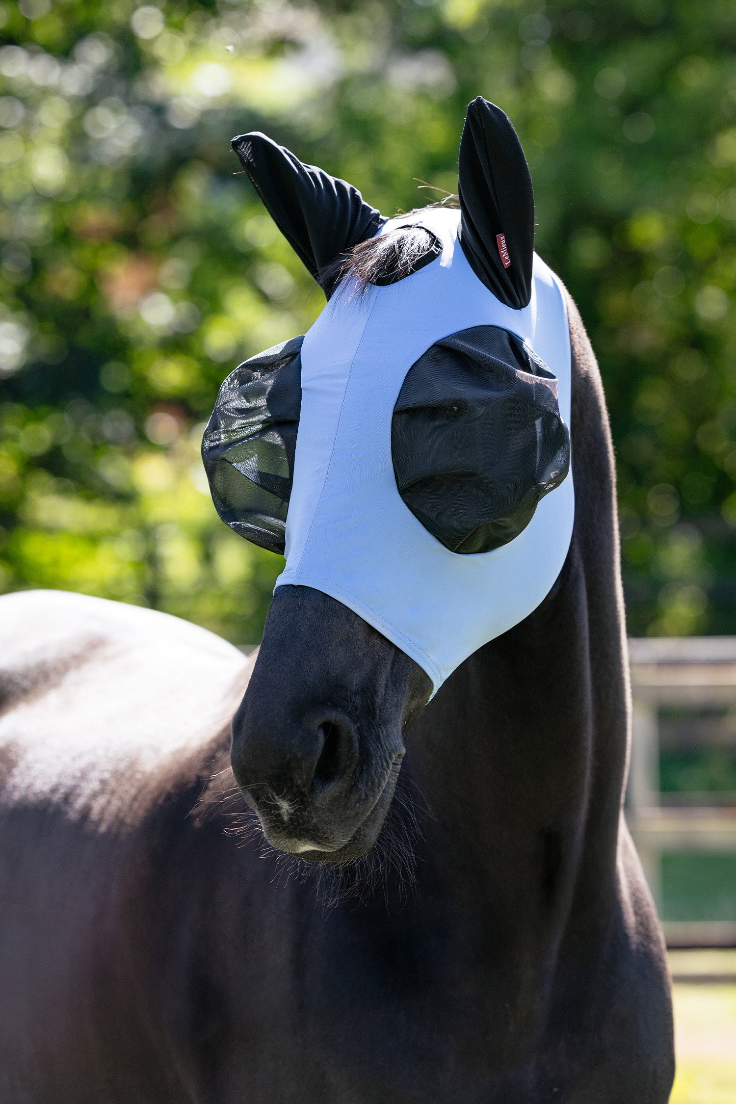Den smarta pull-on designen minimerar risken för att flugor tar sig in under masken, samtidigt som den reducerar skav. De generösa utrymmena vid ögonen ger fri rörelse och god sikt, vilket ökar hästens välbefinnande.